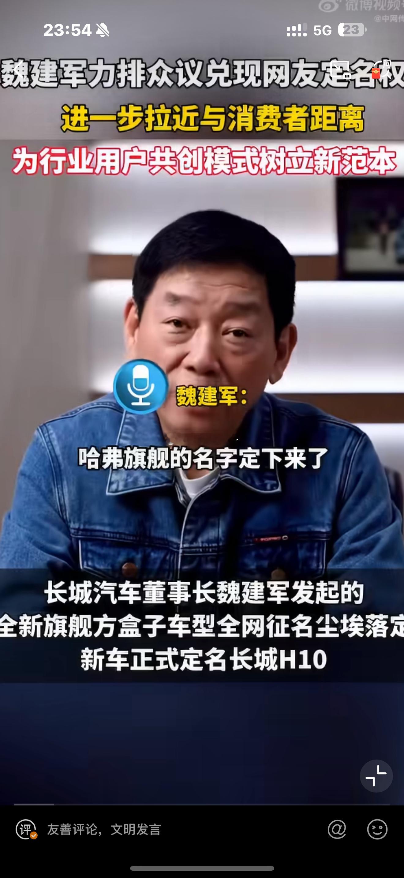 魏建军力排众议兑现网友定名权 魏建军直面内部争议,把新车命名权交给网友,高票选定长城H10,尊重民意、兑现承诺,尽显品牌格局。魏建军说就听网友的叫长城H10