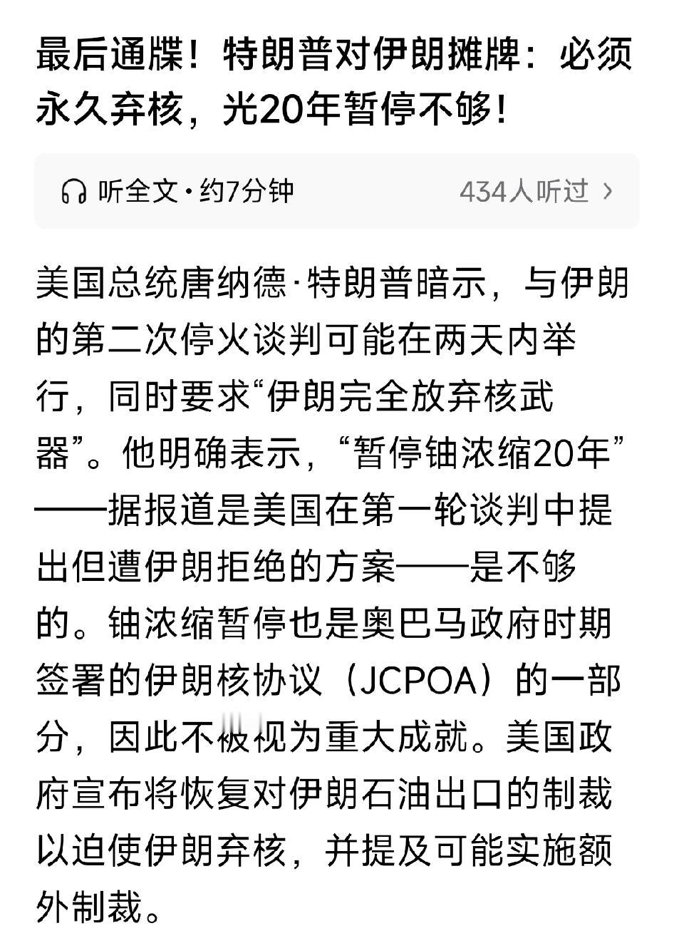最后通牒!特朗普对伊朗摊牌:必须永久弃核,光20年暂停不够!伊朗只有完全放弃核反应堆交出来核材料才会有真的停火。当谈判签约的同时,伊朗就会头也不回的拥抱西方。留下谁在风中凌乱呢!美伊谈判只能在核方面相互妥协,达到停战的目的,而此战美方将失去中东霸权。伊朗硬不起来了 伊朗导弹储备 伊朗核局势 伊朗核计划危机 伊朗核能 伊朗硬实力 伊朗核弹头