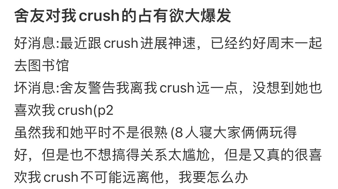 舍友对我crush的占有欲大爆发