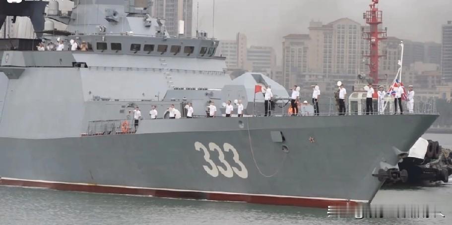 15日,俄罗斯完美号护卫舰访问湛江。其舰长104.5-105米,宽13米,吃水7.95米,满载排水量2200-2250吨,航速26-27节,14节时续航力4000海里。 舰尾设直升机库和起降平台,可搭载1架卡-27直升机。