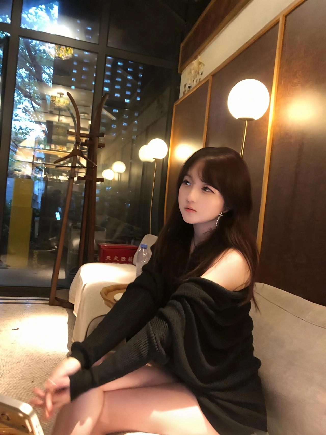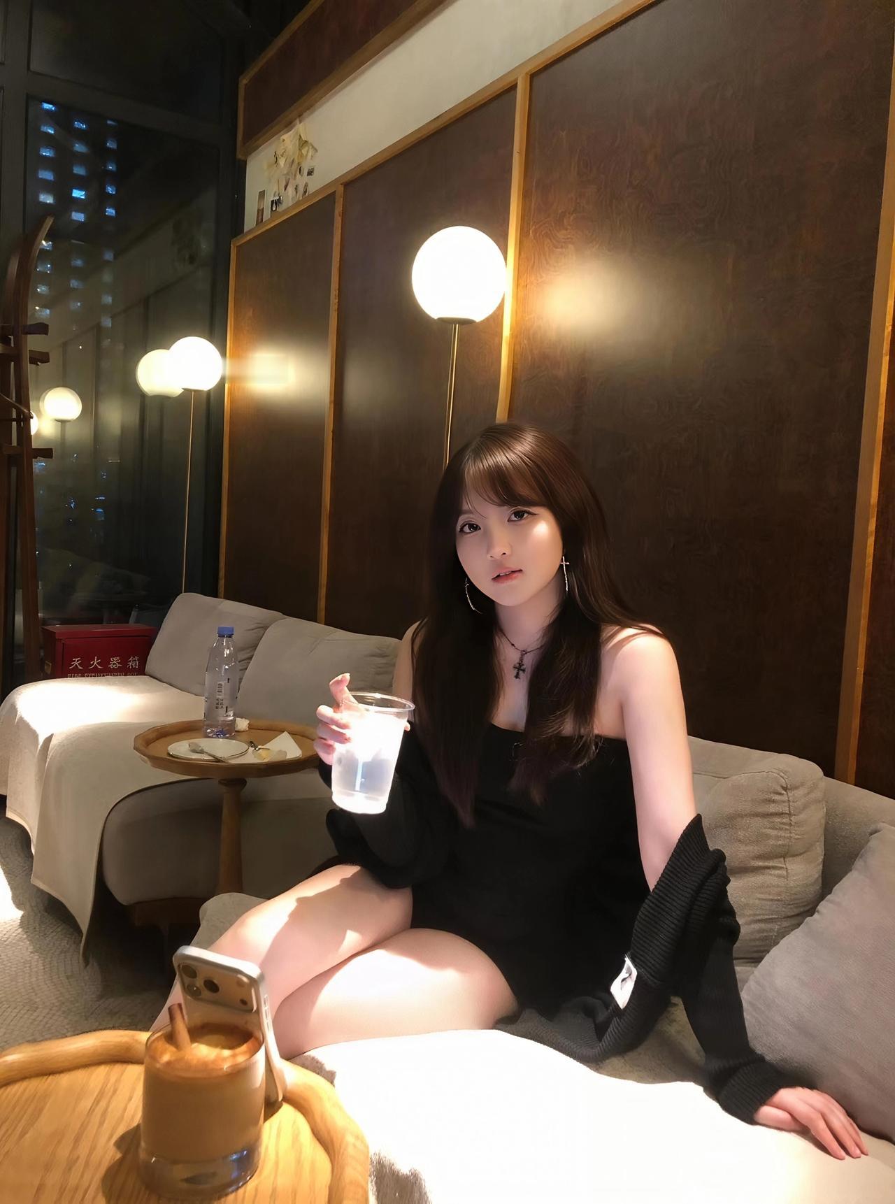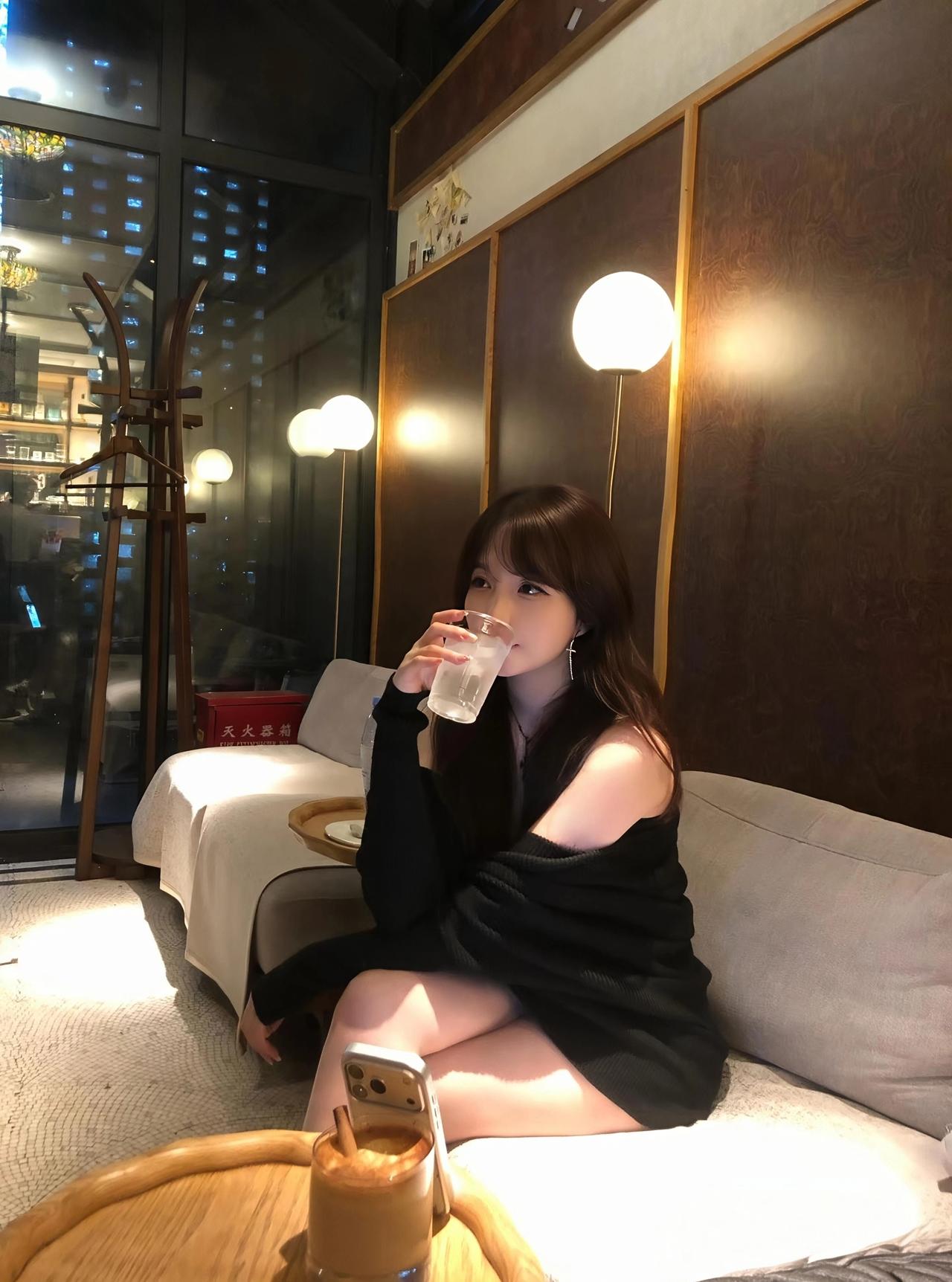 “咖啡馆里的慵懒时光,黑毛衣与白沙发相映成趣”📸🍂