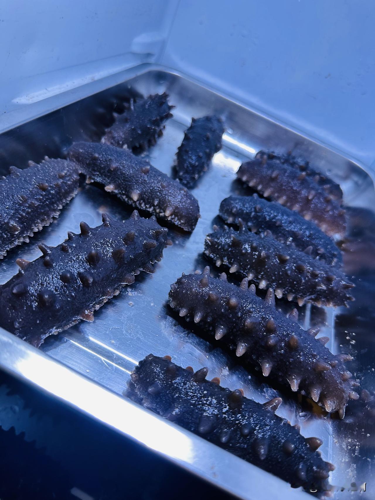 进门老爷们放下背包停下车洗洗手就开始煮海参,冻海参。