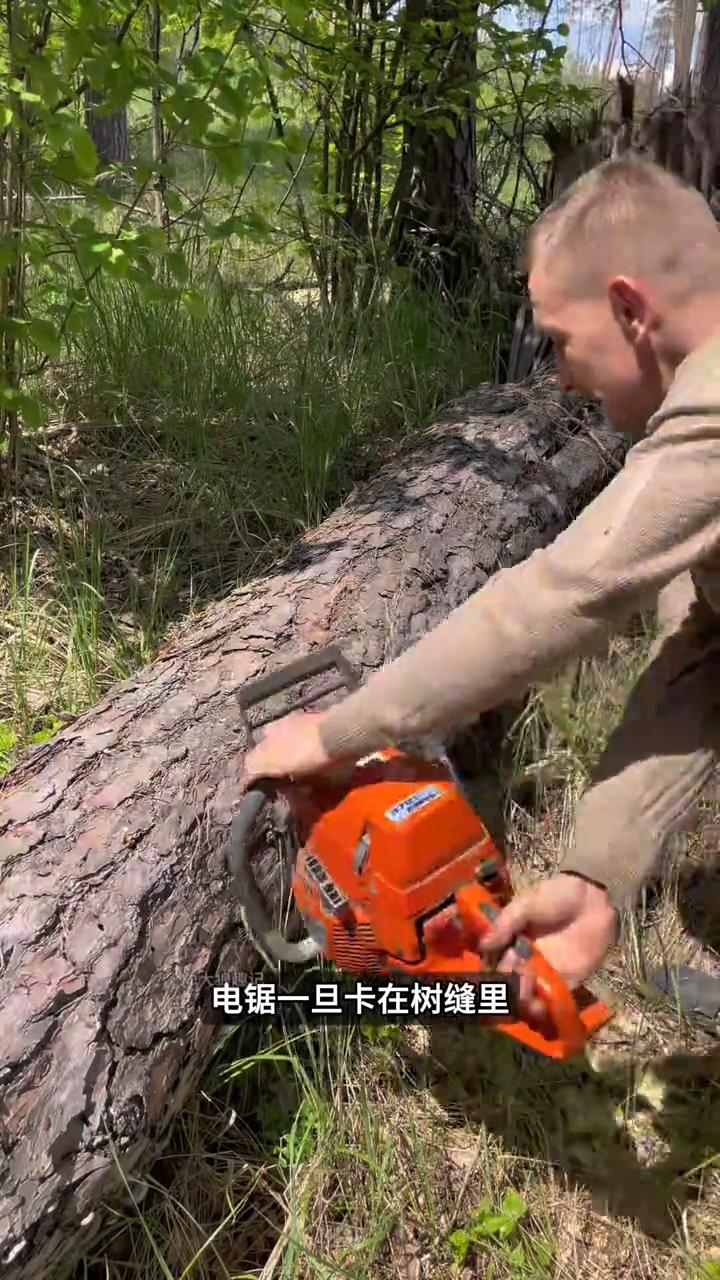 这不是在拼力气,是在控制他往哪倒。哪怕小树,他也不省步骤,看着不急,也一样按步骤来。电锯一旦卡在树缝里,别人还在慢慢往外拽,他不拽直接把卡住的那段掰掉,换一把新的接着干。看着简单,其实是在把隐患提前断掉。