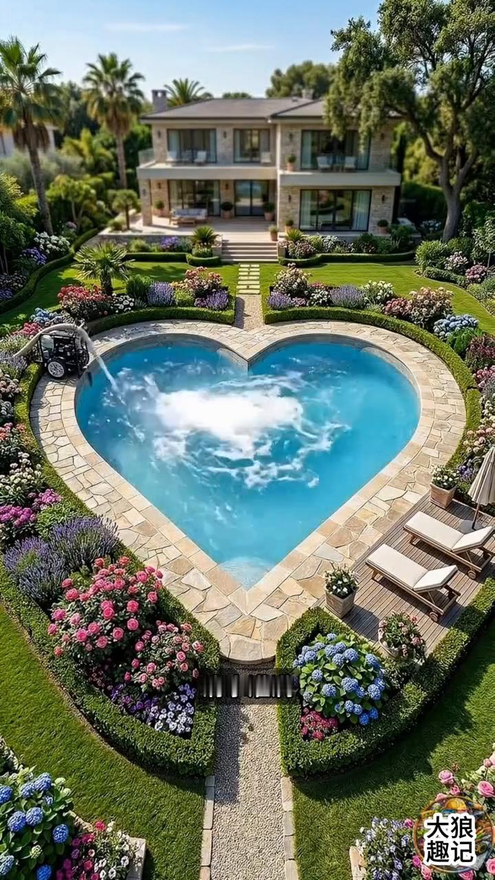 这是我见过最有创意的爱心泳池,从画下心形线条那一刻起,浪漫就已经开始发酵。