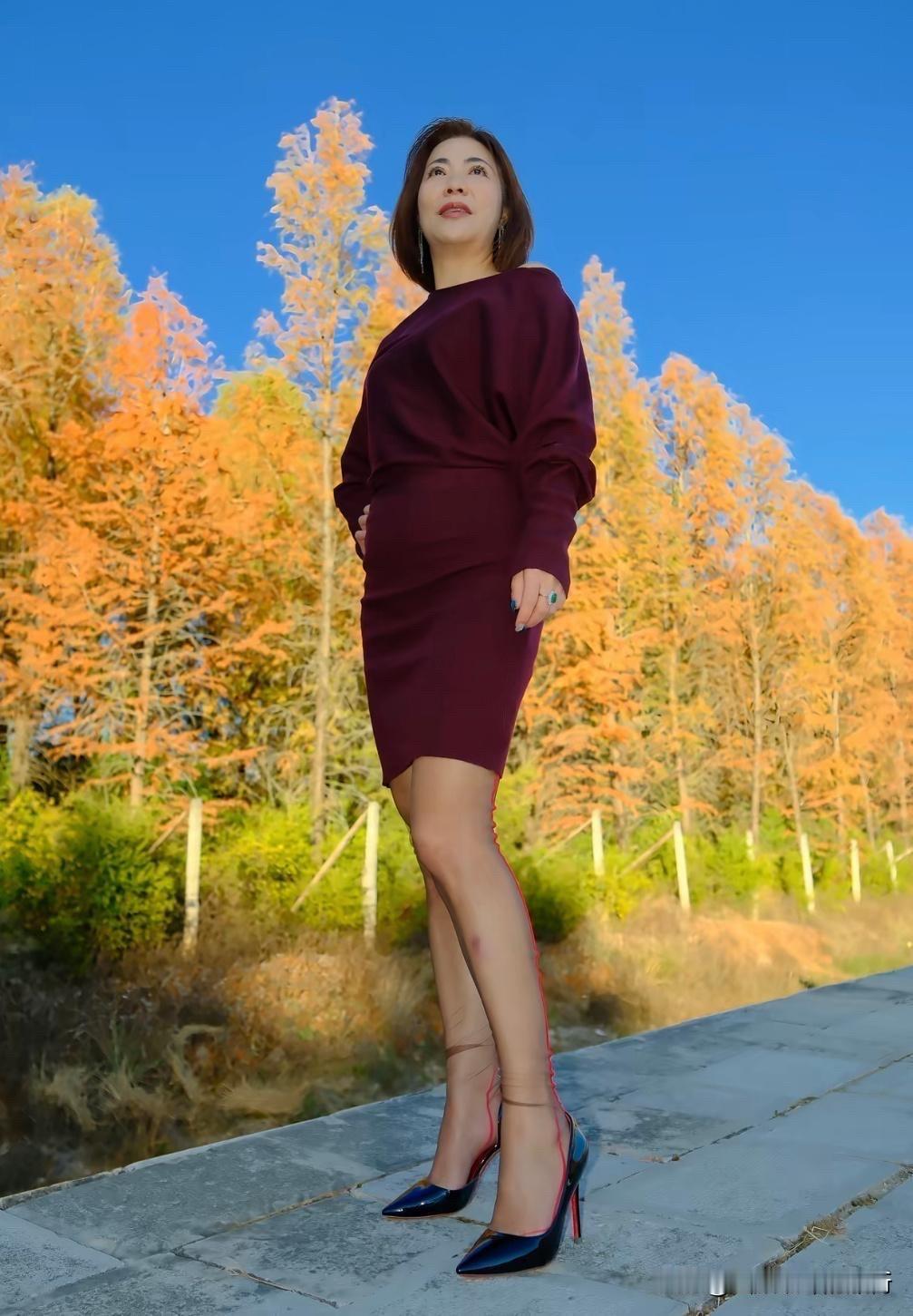 秋林把金箔抖落满肩,红棕裙与高跟鞋私语,伸手时,连风都染上了优雅的温度。 蓝天为幕,秋叶作序,红棕裙裾里漾着的,是把秋光都攥进掌心的浪漫。 暮色浸软了秋树的黄,红棕衣摆随姿态轻晃,伸出手,就接住了整个季节的诗意。