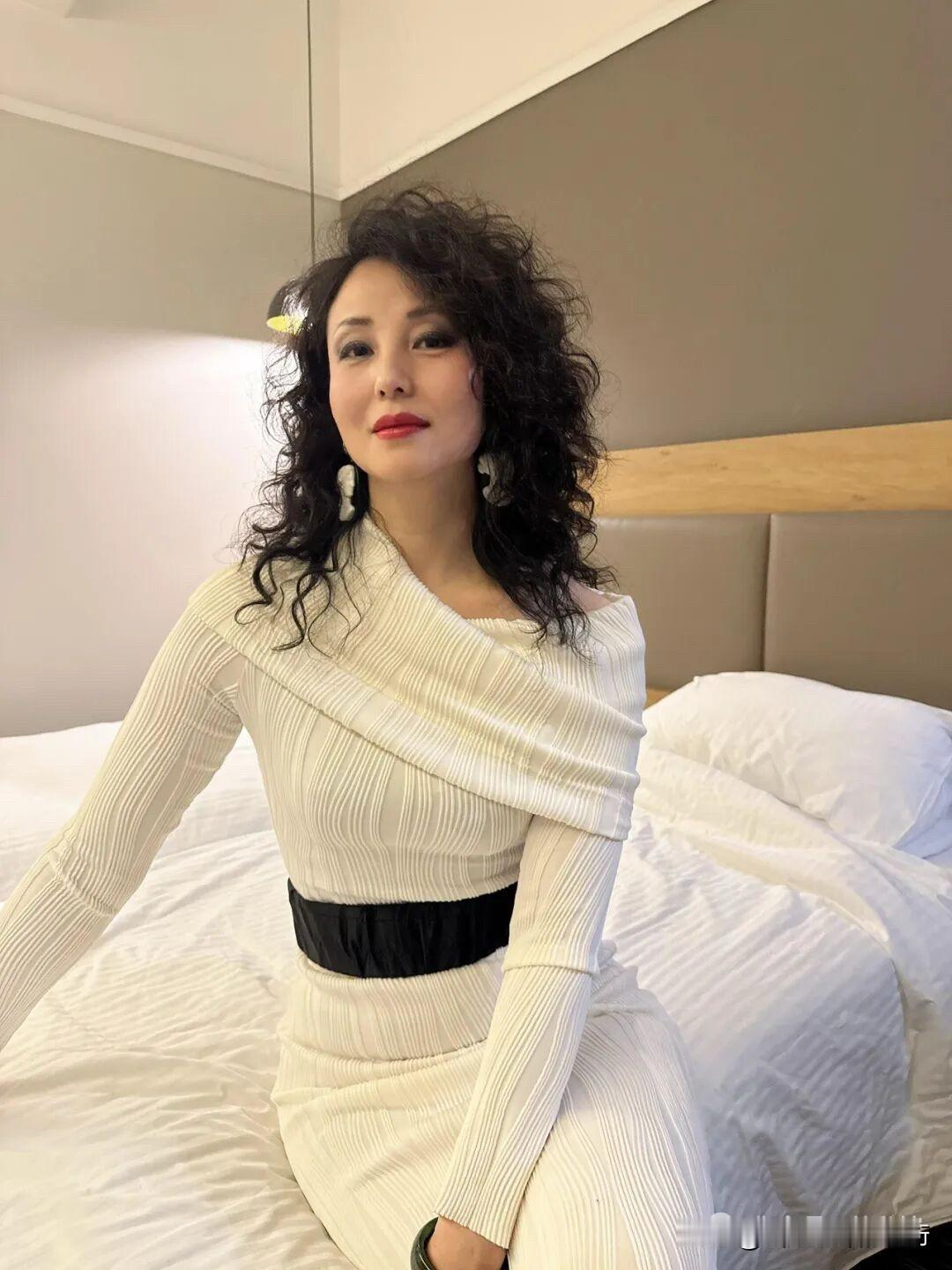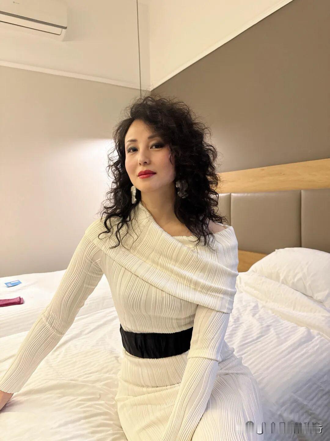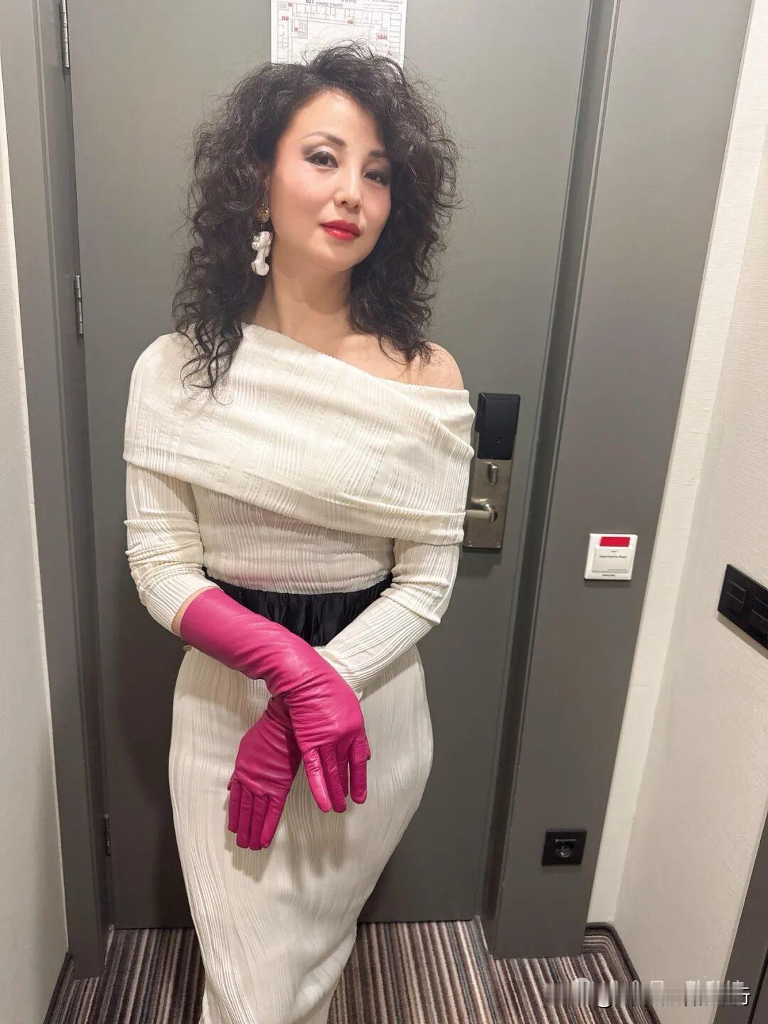 米白裙裁出月光的柔,玫红手套燃着火焰的热,每个褶皱里都藏着浪漫的对峙与融合。 卷发漫着慵懒的风,玫红手套像偷来的晚霞,把素净的裙裾也衬得热烈起来。 暗调空间里,白裙是凝固的月光,玫红手套却跳成了鲜活的诗,每寸姿态都在讲优雅与热烈的故事。