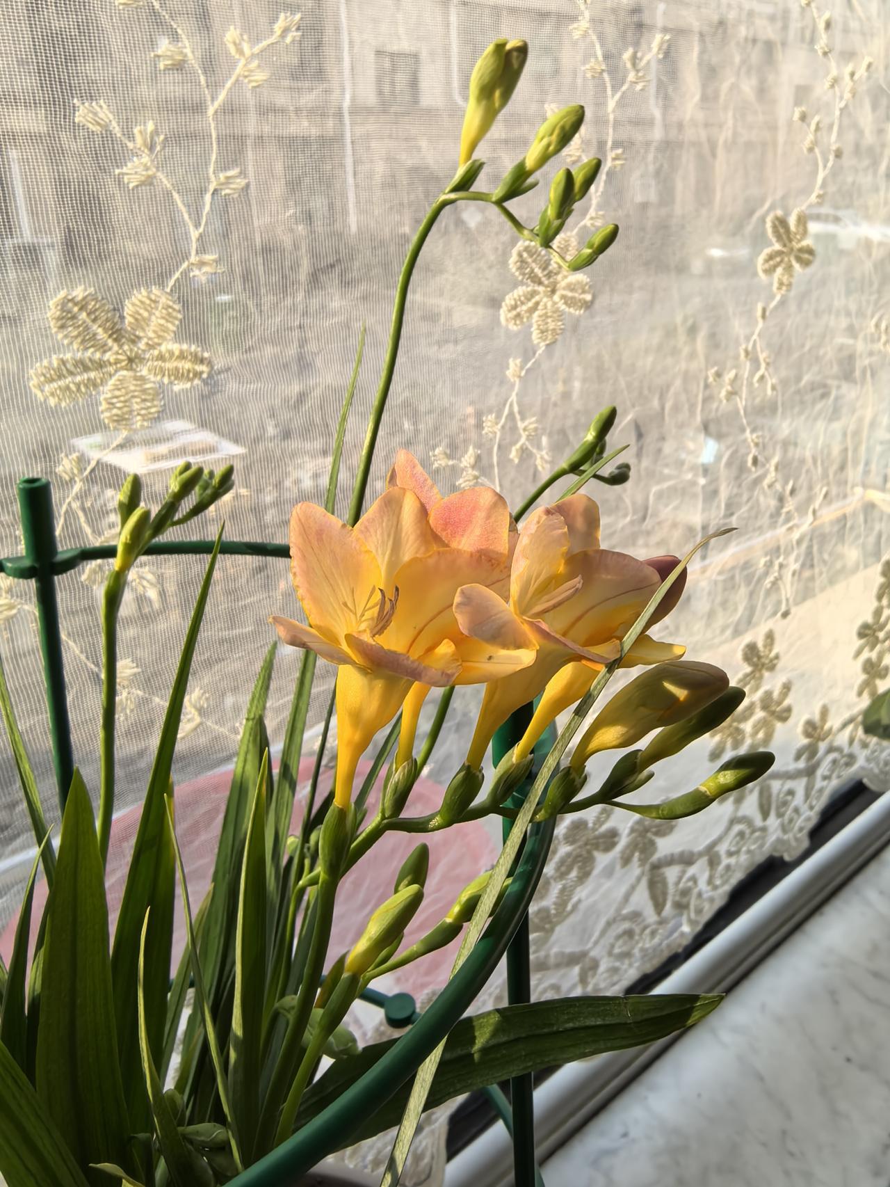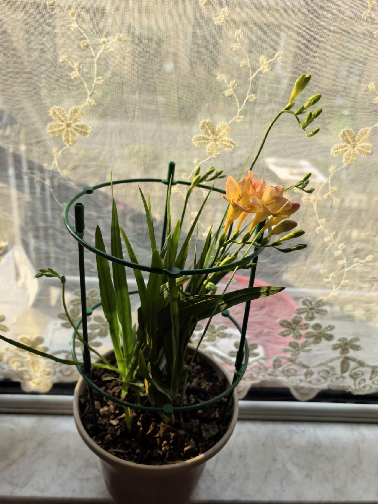 正坐在沙发上织毛衣呢似乎楼下有人叫我,起身一看,哥们端着一盆花站在门口。也没开门从栅栏递过这盆花,接过来有淡淡的清香,很好闻!三楼大姨送过两个荠菜团子我没要,反而给她一桶荠菜让她回家择。我说以后我挖你择,她欣然接受这个建议,说我择了咱两家吃。我是愿意挖没空择,因为空闲还得织毛衣。这回找到好搭档了!