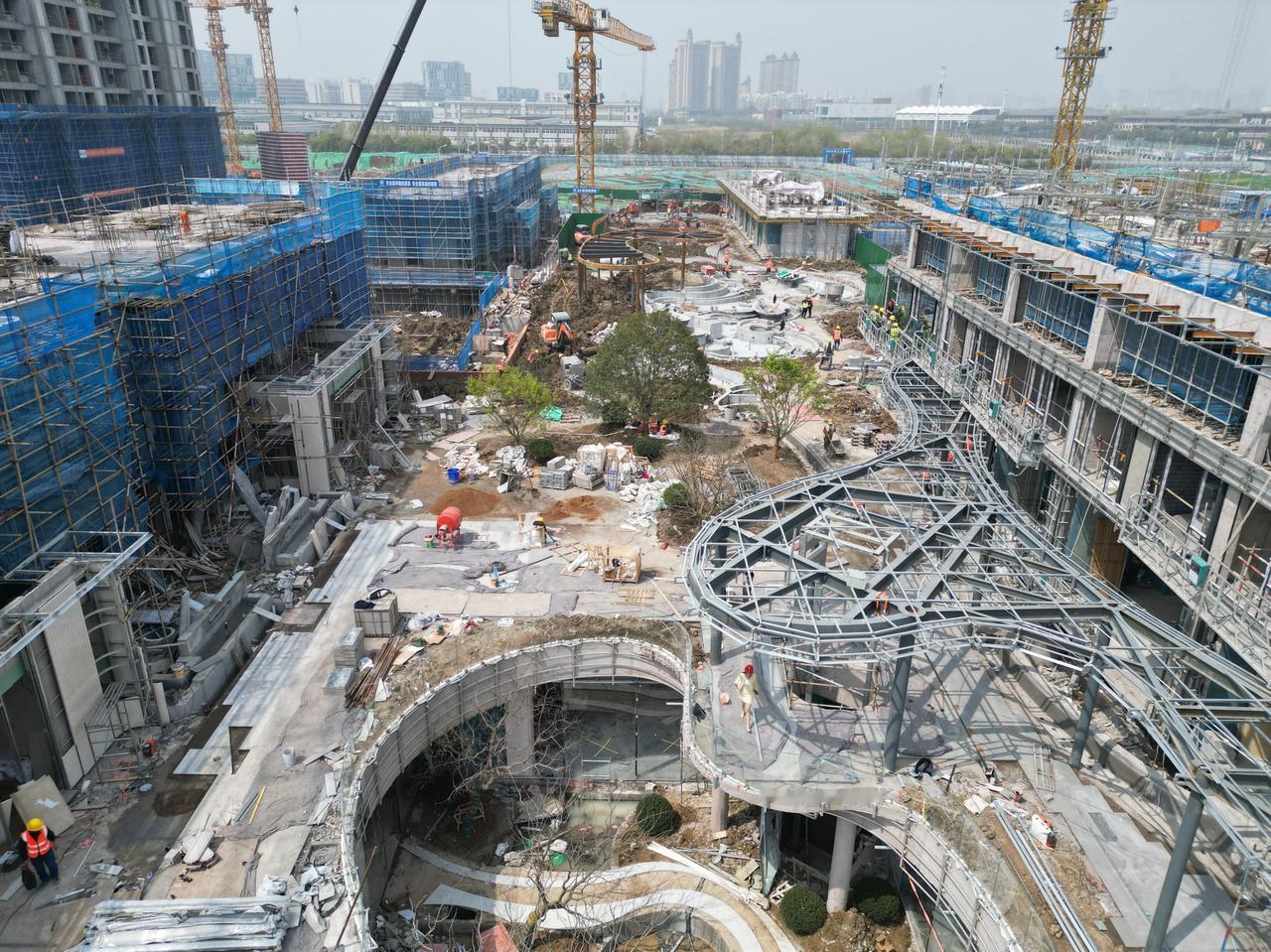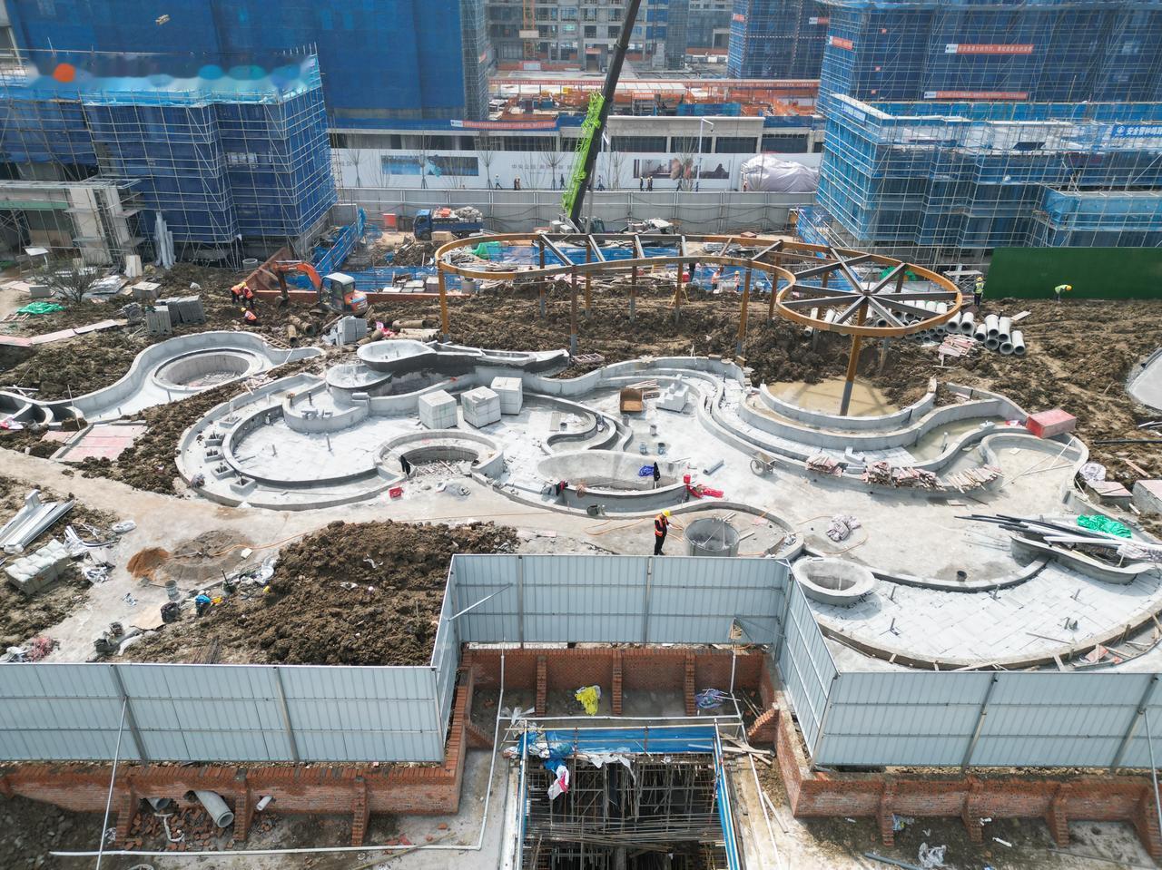 酒店式大门、外立面、小区庭院都已经初具样子了,从实景图上能看到,设计了大片的水系景观。
