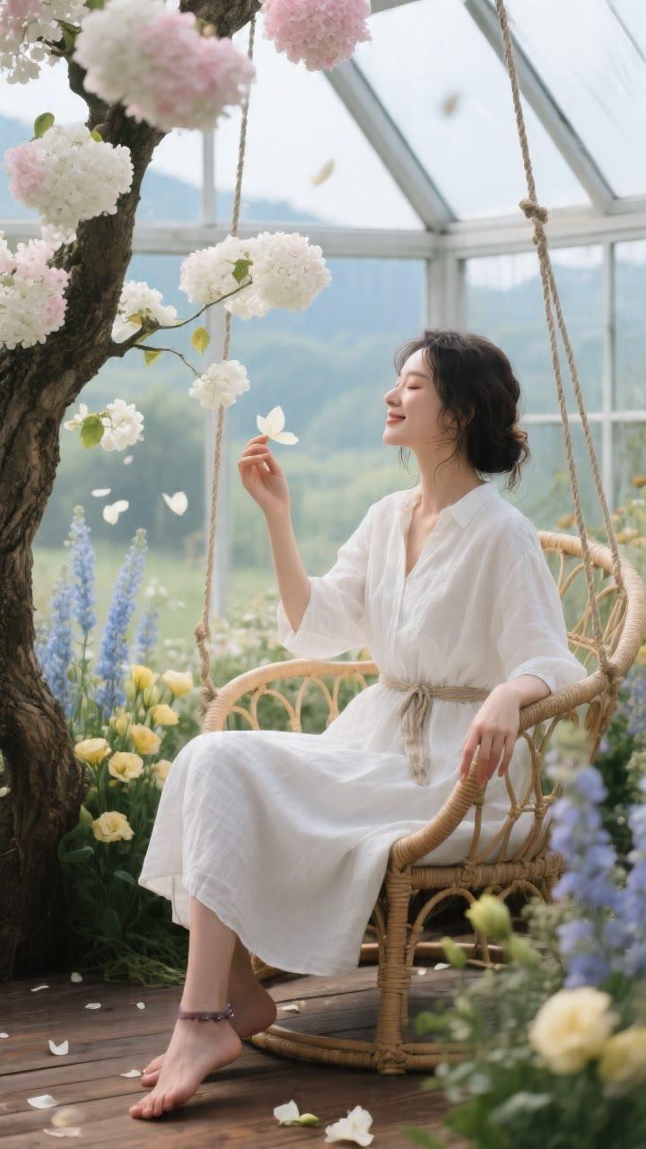 春日花海中的甜美笑容,清新自然,如诗如画。