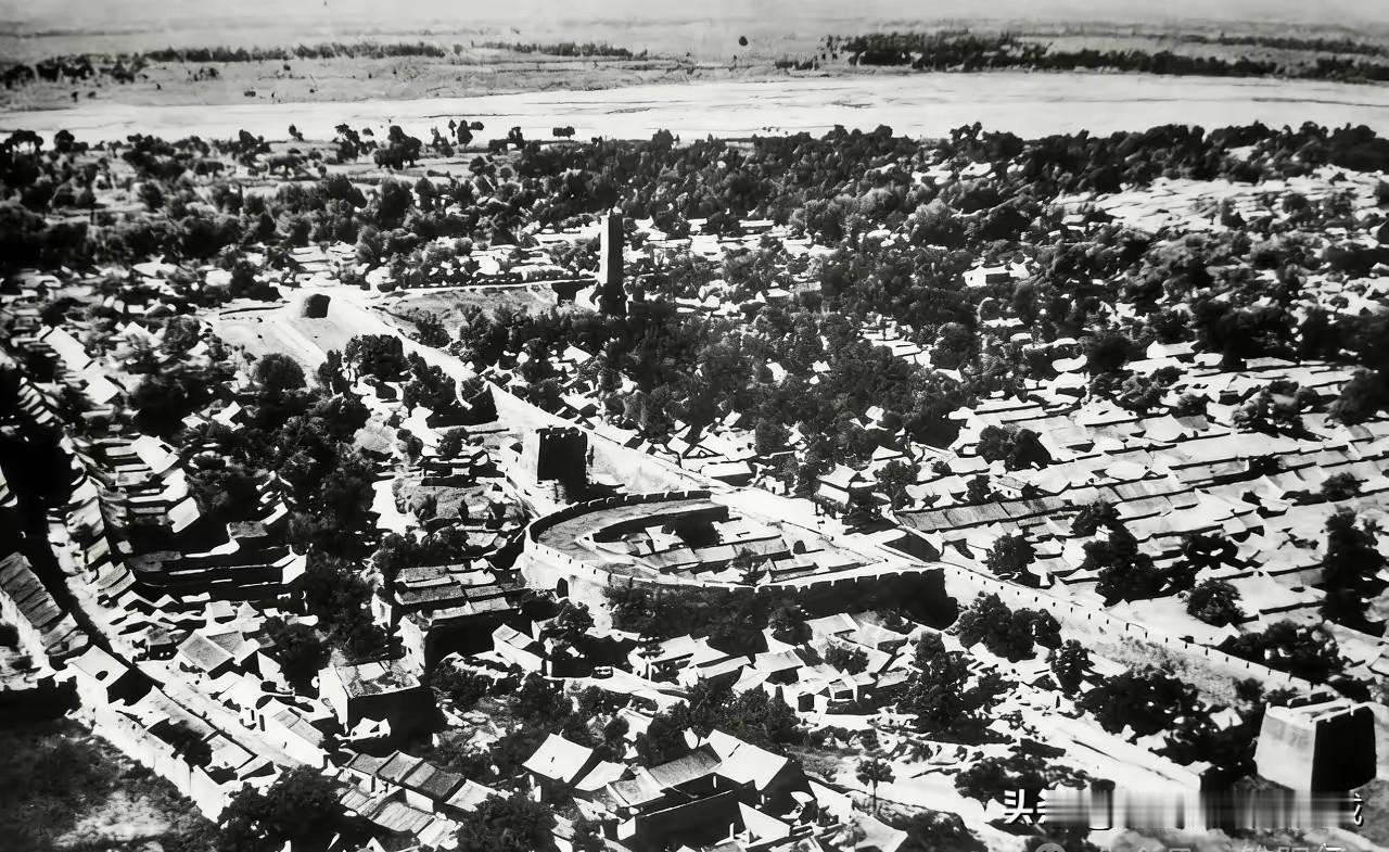 从这张1939年德国汉莎公司拍摄的洛阳城老照片来看,城墙全是用砖砌成的,是金元明清的洛阳老城东门——建春门。由于日军飞机在1939年连续对洛阳城大轰炸,百姓从城内出逃拥挤不堪,于是第一战区司令长官卫立煌下令拆除了洛阳五个城门。砖砌的建春门和东城墙从此消失,现在只留下照片上能看到的城内文峰塔和城外的潞泽会馆。