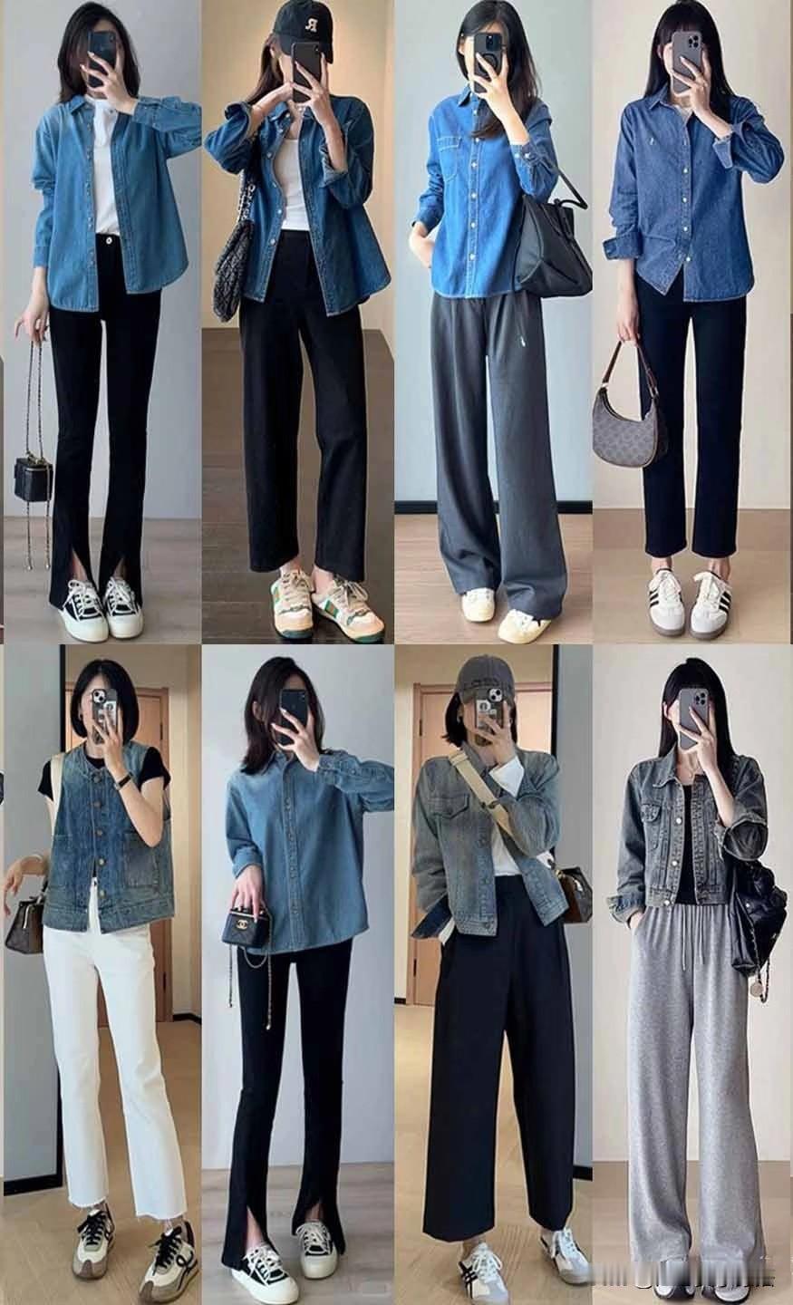 2. 颜色:果断冲深蓝色!浅牛仔太显稚嫩,深牛仔又容易暗沉,带点灰调的藏蓝,沉稳又有活力,黄皮姐妹穿也巨显白