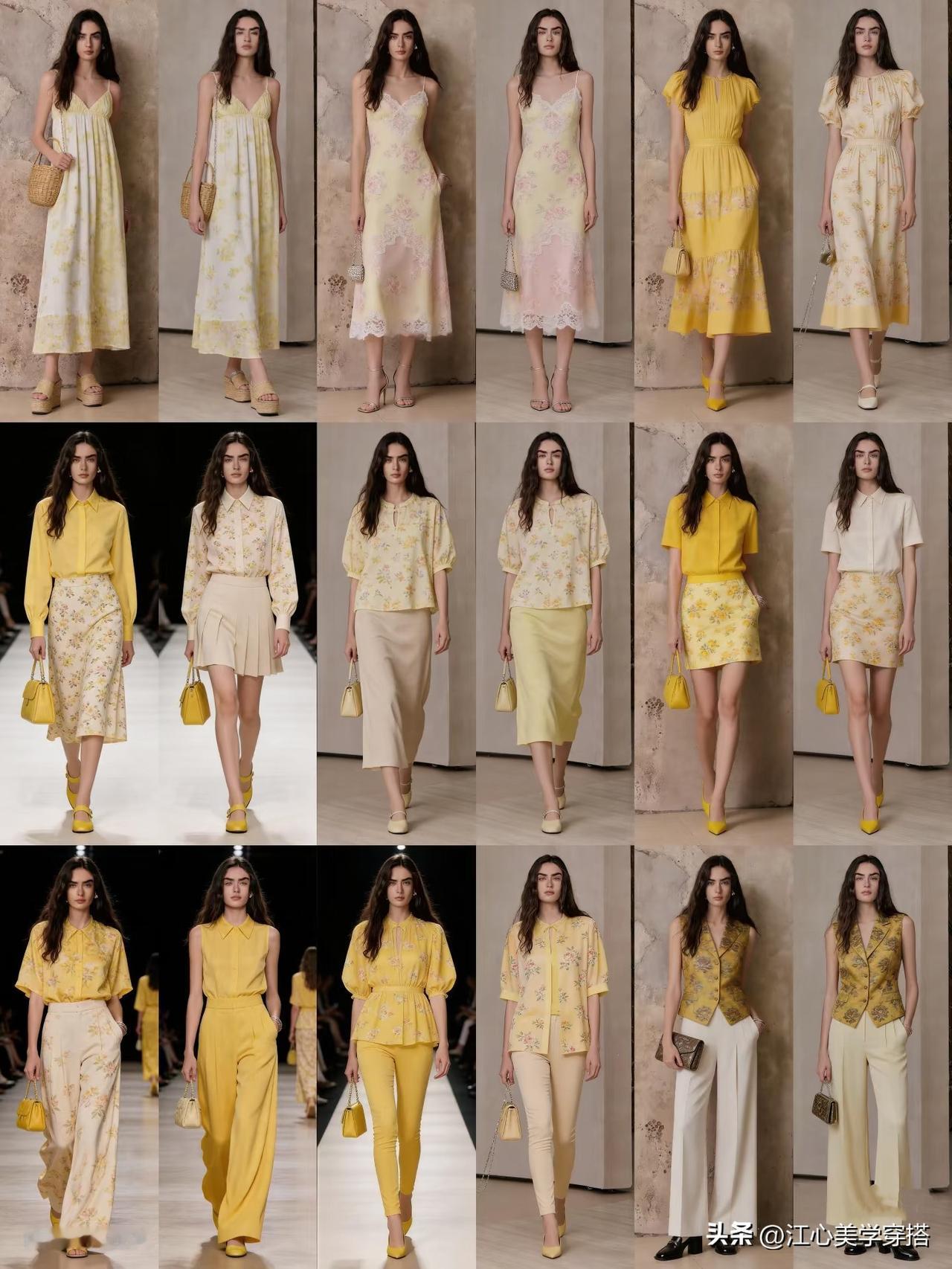 如果说春天有颜色,那一定是金合欢黄。它不是明晃晃的亮黄,而是融入了一丝绿调的低饱和度鹅黄,像刚剥壳的鸡蛋一样温柔,对亚洲肤色友好到哭泣!