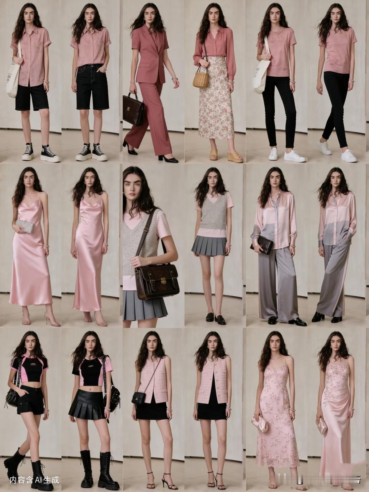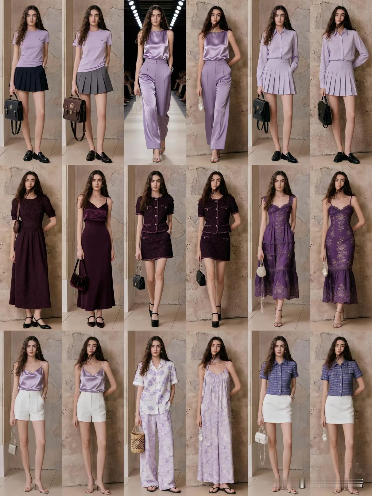 - 紫藤色 × 胭脂粉:用“同色系深浅叠穿”,紫色针织外套披在粉色连衣裙外,浪漫又高级。