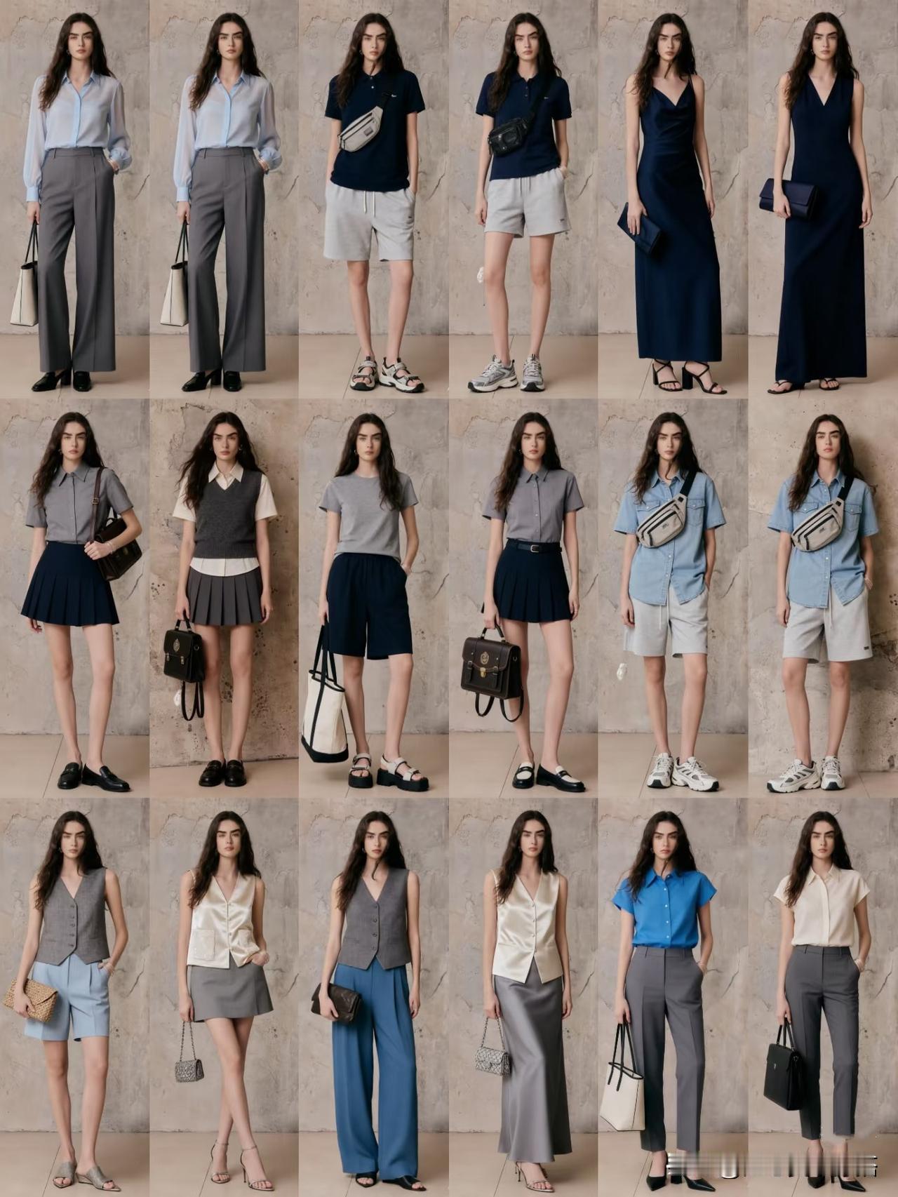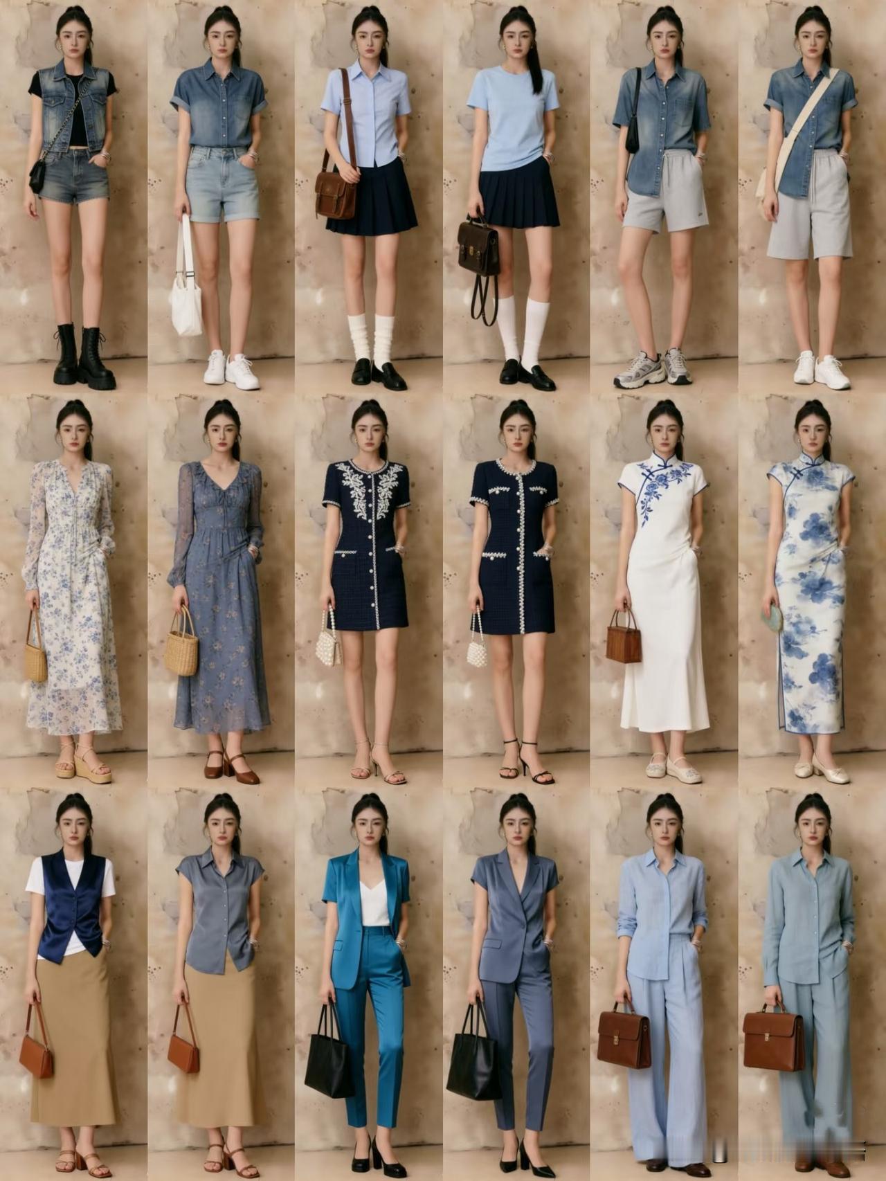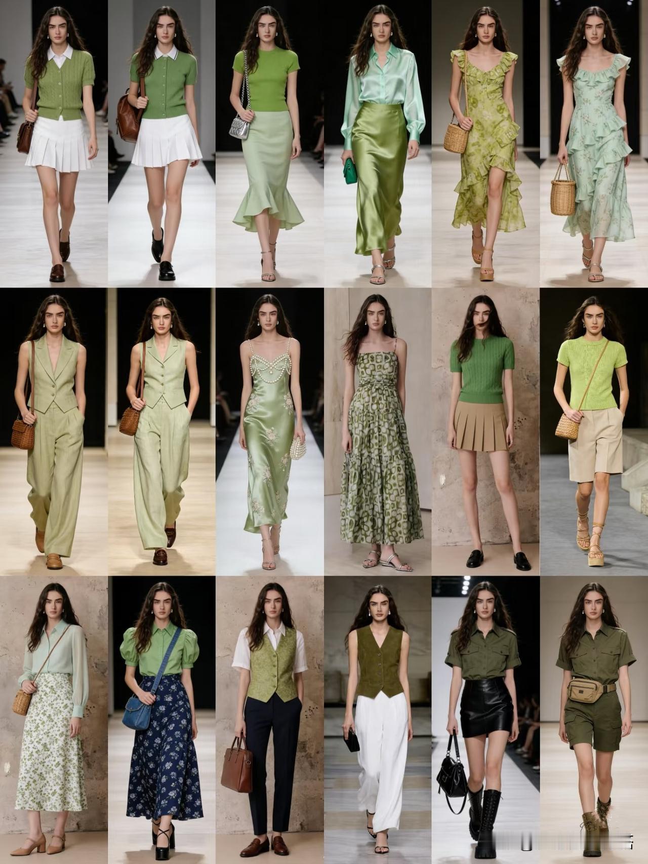 - 湖泊绿 × 晴空蓝:上下装分割撞色,或在一身中性色中用一双湖泊绿鞋子、一只晴空蓝包包小面积碰撞,瞬间点亮全身。