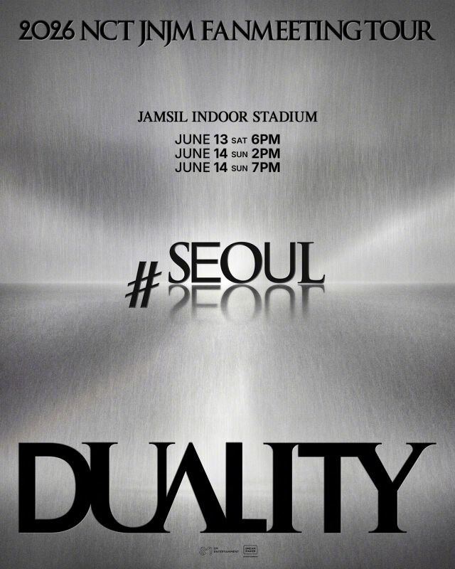 "2026 NCT JNJM FANMEETING TOUR [DUALITY]"首尔站将于6月13日至14日在蚕室室内体育馆举行,共计3场演出。作为NCT JNJM首次粉丝见面会巡演的起点,本次演出自消息公开以来便引发广泛关注。