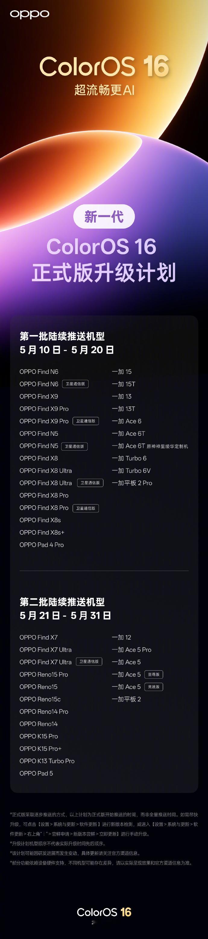 新一代 ColorOS16正式版升级计划和推送机型