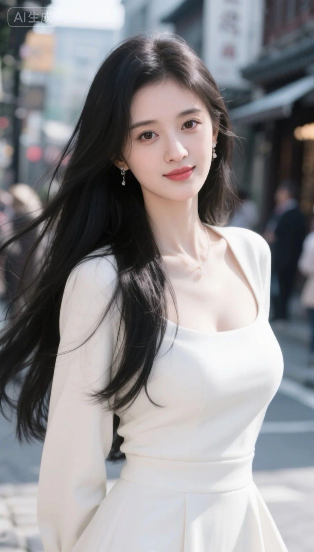 卢昱晓×TATA直播造型Look,一袭纯白抹胸裙装出镜,亭亭玉立,简约纯