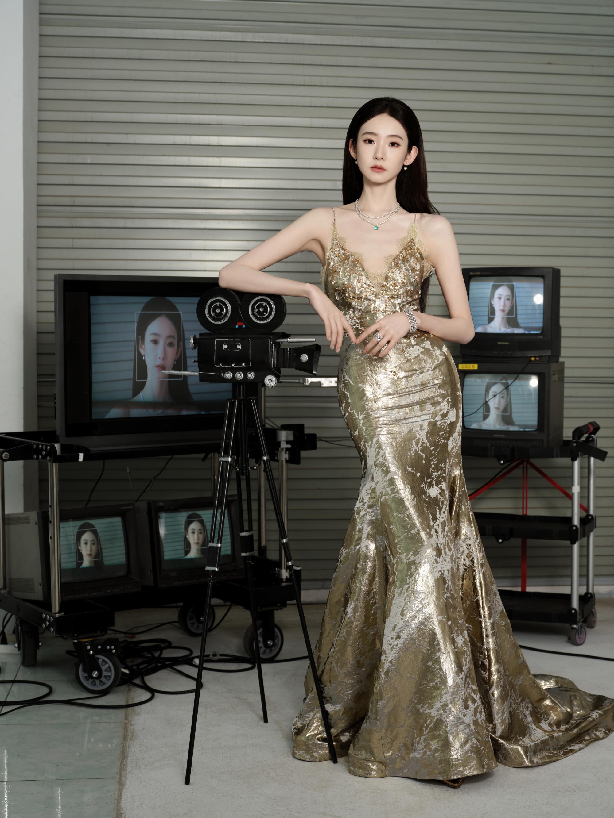 救命!张艺凡这组北影节造型直接美到我心巴上了😭鎏金鱼尾裙也太适合她了吧!清冷的长相+贵气的造型,又纯又欲,腰臀比好到离谱!站在复古摄影机和监视器中间,完全是电影女主本人,每一帧都美到可以直接当壁纸!已经开始疯狂期待北影节红毯现场了,我们凡凡真的越来越美了