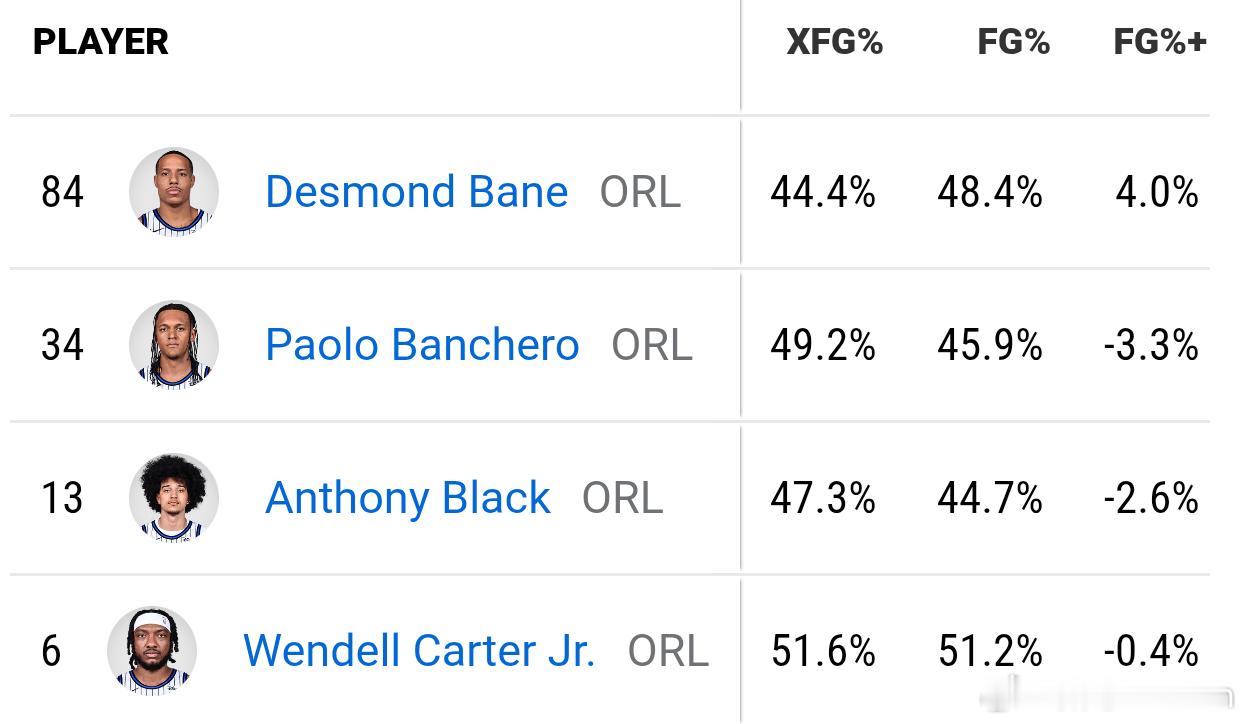 这种极高的出手质量却只能换来亏损的感觉谁懂?都不用和约基奇,卢卡,SGA这些出手收益+8%以上的球员比,他的这份成绩单甚至不如在小妞同样打小前锋的马绍尔(+3%)