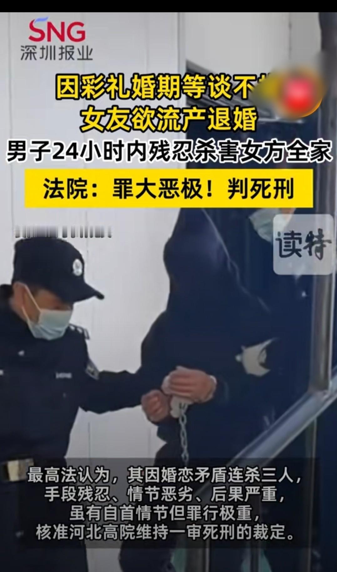 参考信息:婚事谈崩男子杀害怀孕女友一家3口,案件详情披露:手段残忍,男子自首但仍被判死刑 2026-04-1516:00·闽南网
