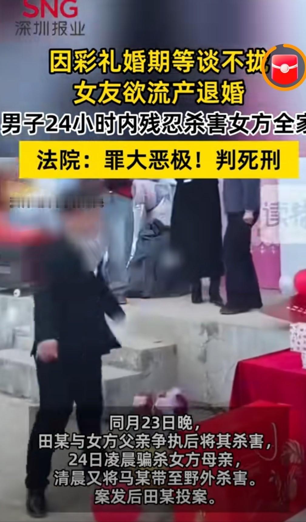 河北男子田某在24小时内连杀女友一家三口,包括那个还没出生的孩子!怀孕女友曾哭着哀求他"看在孩子的份上",他不为所动依然下了毒手。因彩礼纠纷引发的这起灭门惨案,最终以"三尸四命"的惨烈代价落幕。事后田某自首,但法律的判决没有给他从轻的机会。