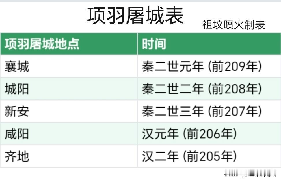 项羽共屠城5次,刘邦共屠城10次。最让人费解的是:刘邦作为楚国人,10次屠城中,竟然有6座是家乡的楚国城市。