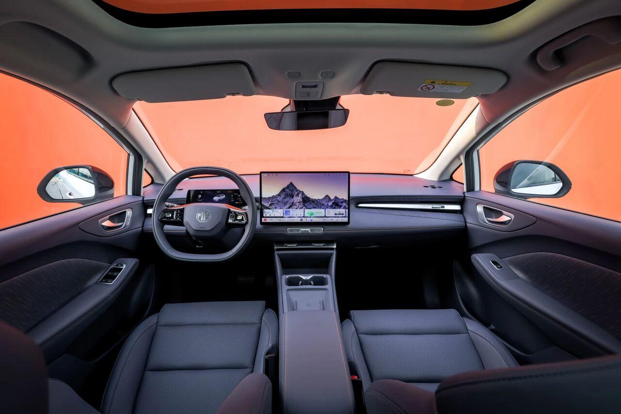 这次的新车,外观会延续了 MG4 经典的运动造型,新增冰晶蓝、杏仁米两款潮色,内饰加入星夜紫+双拼色方向盘,搭配黑悬浮车顶和 17 寸星芒轮毂,颜值更对年轻人口味。