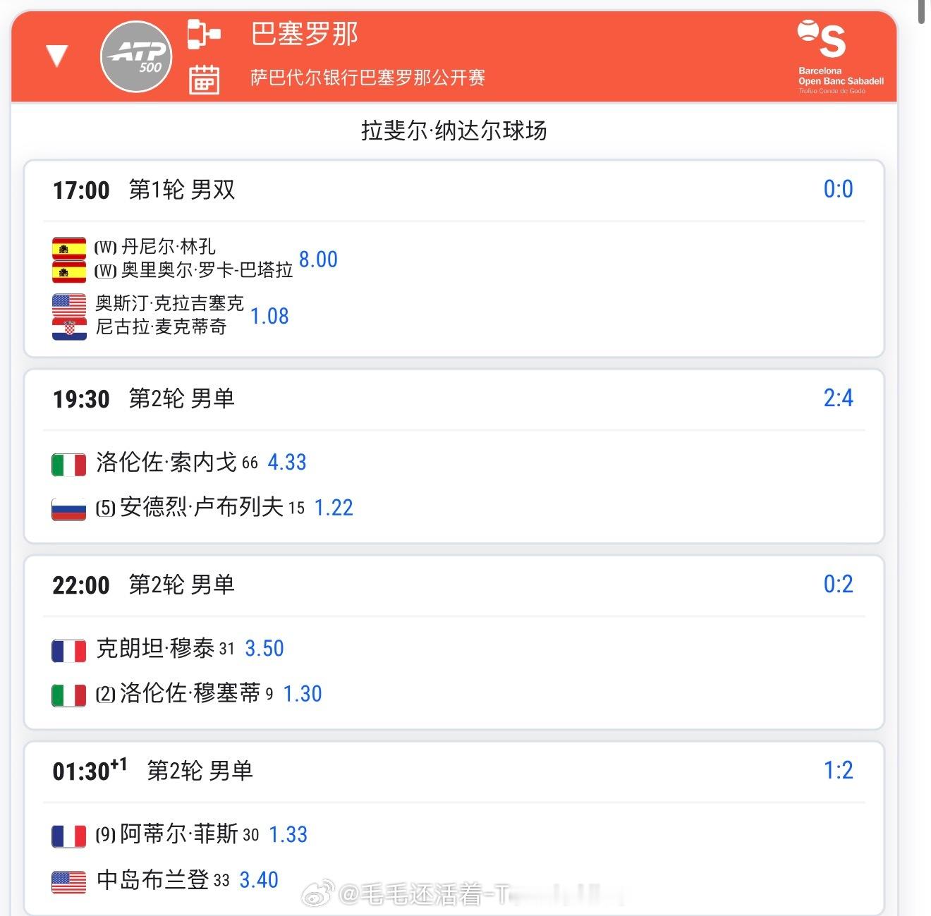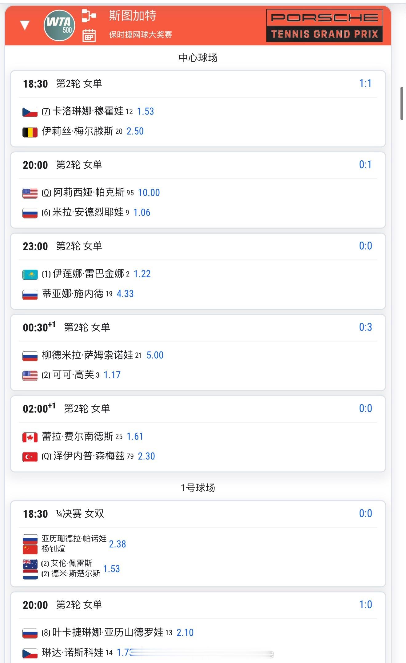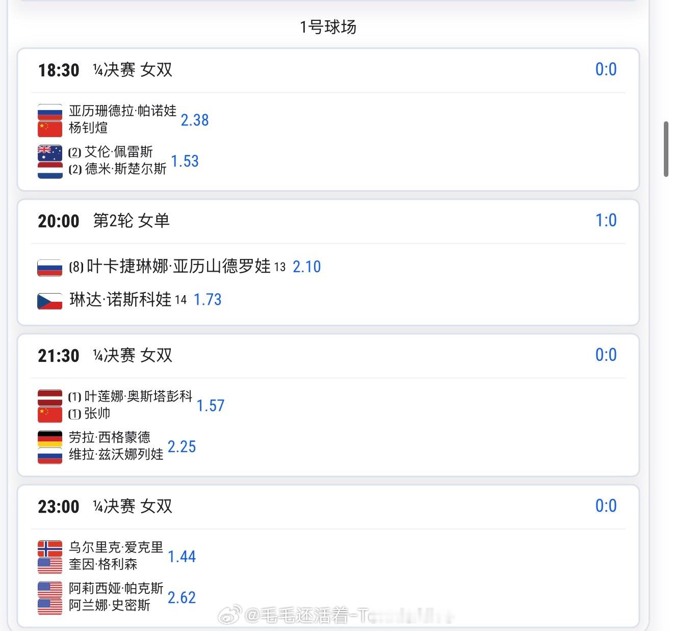 【今日比赛赛程+直播赛程】23:00莱巴金娜vs施内德22:00张帅女双23:3