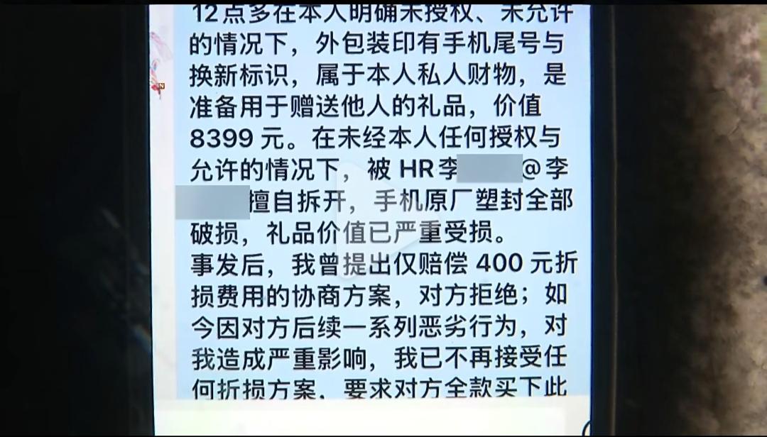 男子网购8399元手机被HR私自拆封,找其理论维权反被公司辞退。