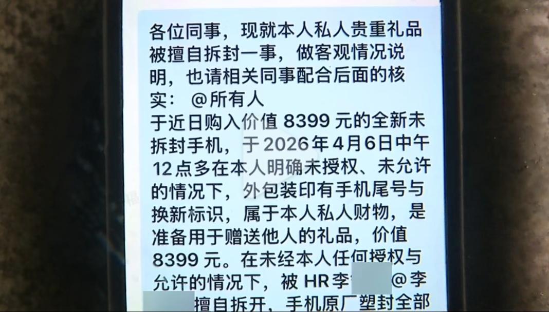 杭州的小李,网上花8399元买了台全新vivo X300 Ultra,本来是准备送朋友的礼物,结果快递到公司后,被HR李女士私自拆了!就连原厂的塑封也全给撕了,手机直接贬值,送人都送不出去了。