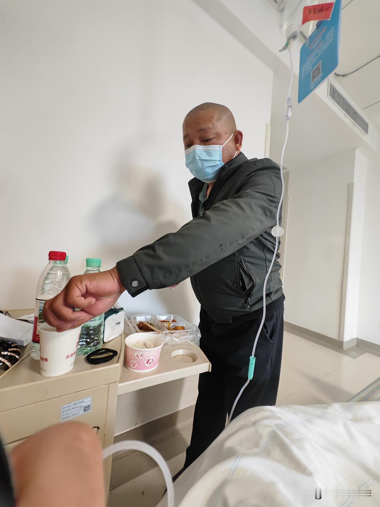 中午他来了是我没想到的,黑皮跑上跑下给我拿结果,买饭、给我泡药,被人照顾的感觉还是不错的!饭吃了几口我说留着晚上吃免得浪费,黑皮说丢了晚上再去买!我要黑皮回去休息,黑皮说不回去就在这陪我!说下午两点半还有检查要陪我。上厕所黑皮提着吊瓶跟着。
