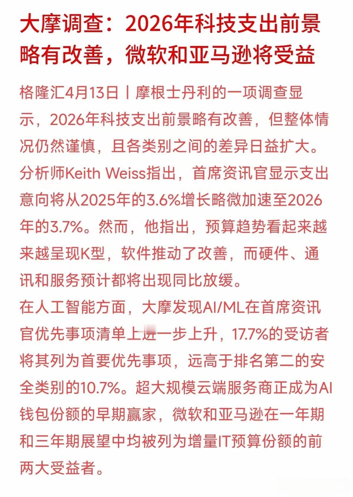 根据美国相关公司调研,2026年科技发展依然是主要方向,而且有非常大的发展空间与前景,所以,在科技创新发展,谁跑在前面,谁发展比较有核心技术,必然有很大的优势与潜力。在市场抢占更多的份额与机遇!