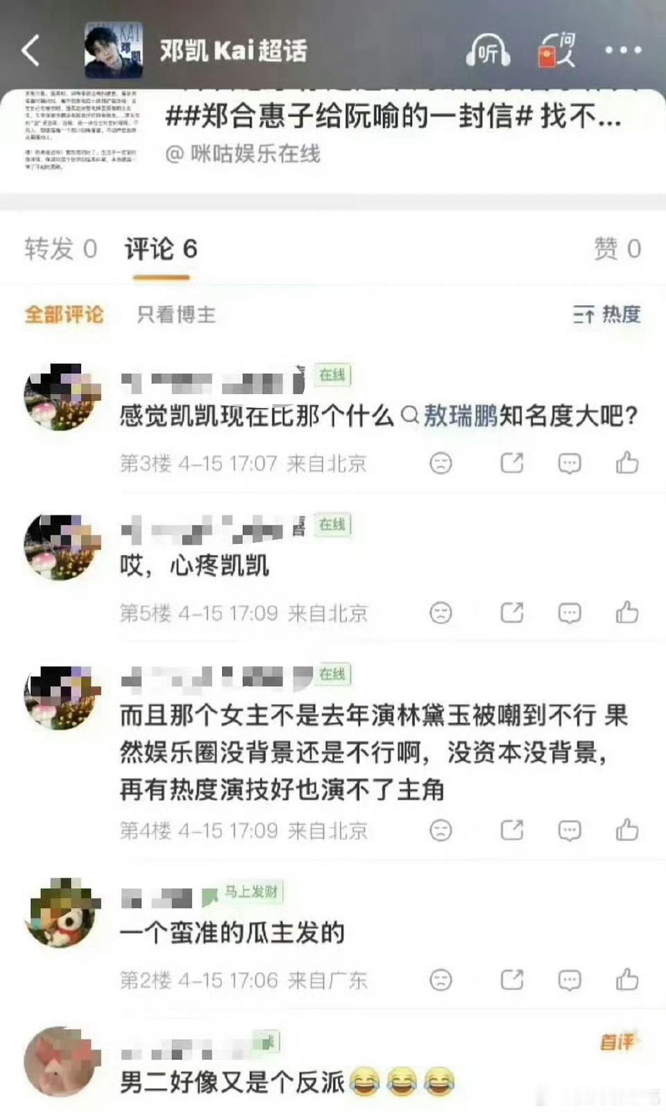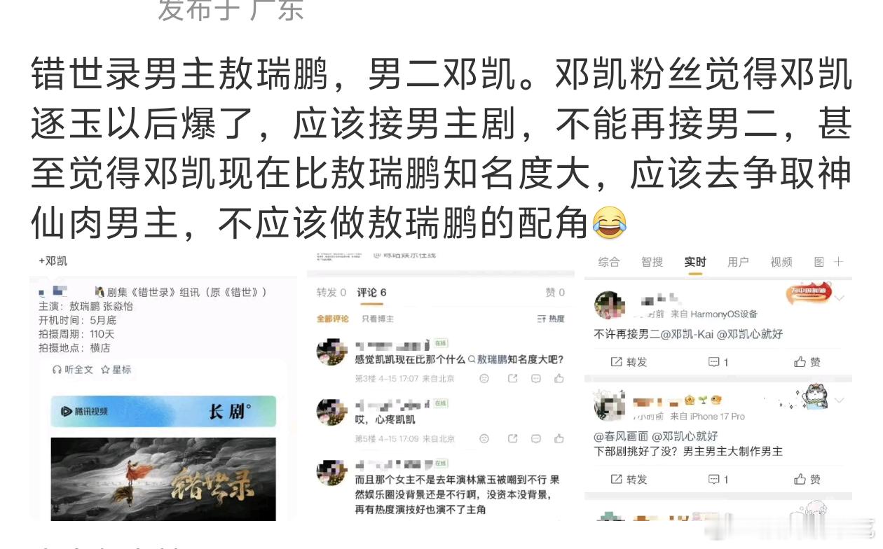 原来前因在这啊,邓凯粉觉得邓凯红了,敖瑞鹏不配当压他当男主,邓凯应该去拍男主剧