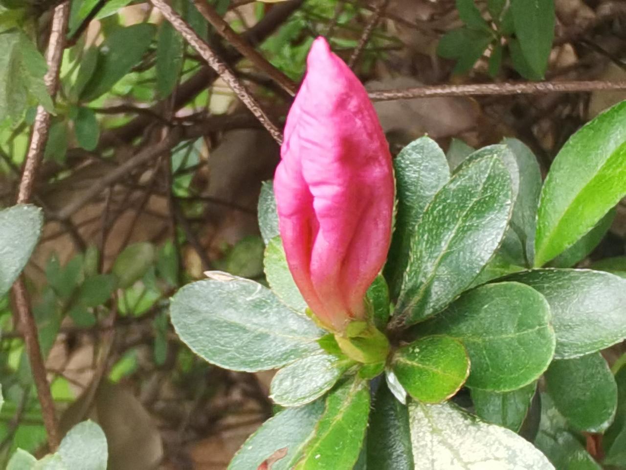 洋泾湖的映山红。 洋泾湖的映山红开了,有花包有花朵。 听说以前绍兴还把映山红当野