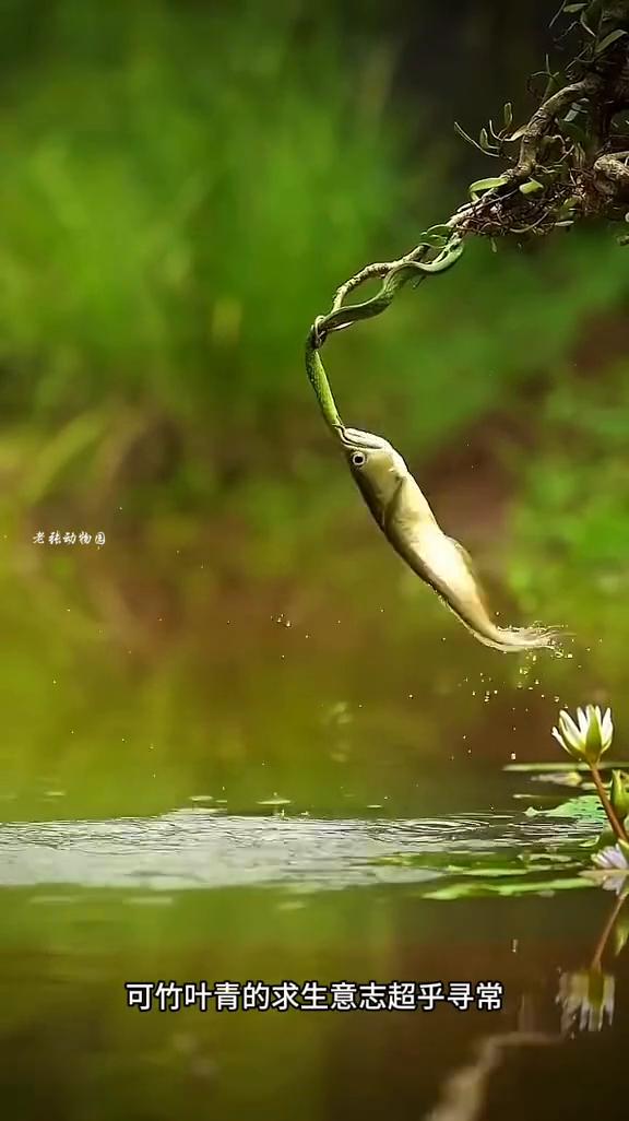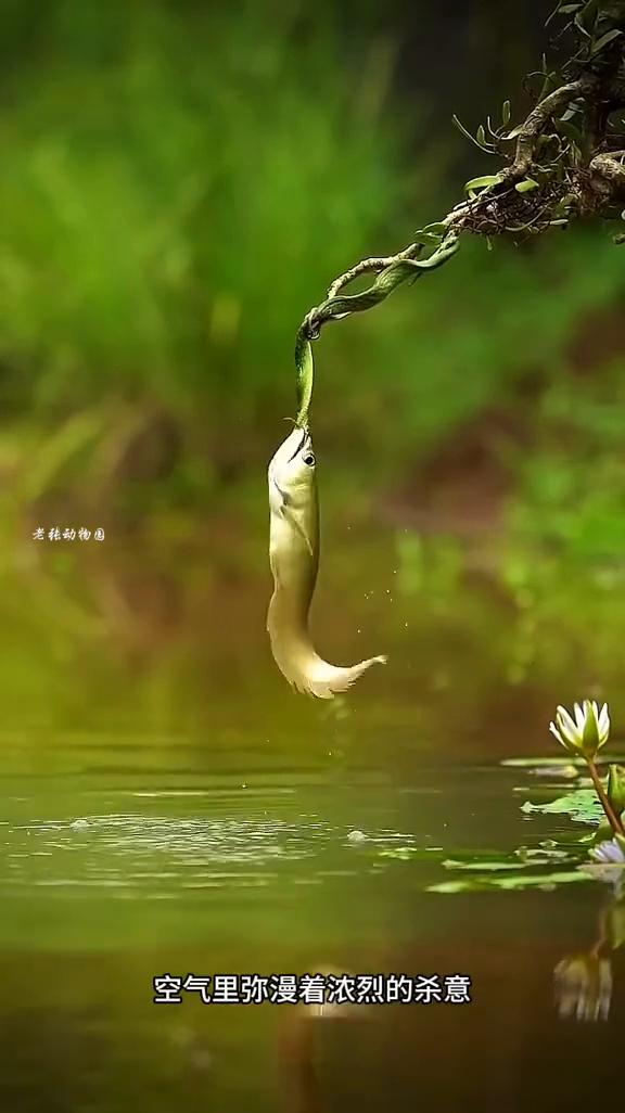 竹叶青拼命翻卷身体试图挣脱,然而银龙鱼的咬合力堪称恐怖,上下颌像焊死了一般,丝毫不留挣脱的余地。银龙鱼早已被饥饿冲昏了头脑,瞳孔里只剩一个执念进食。它浑然不觉自己口中衔着的是一条剧毒无比的竹叶青,只要对方找准机会反缠上来,它随时可能毙命。而一旦被拖入水中,竹叶青也同样难逃一死。