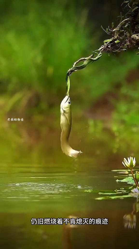 竹叶青倾尽全身力气,紧紧缠住岸边那截粗糙的树枝,鳞片深深嵌入树皮的裂缝,整条身躯绷得像一根即将断裂的弓弦,拼死抵抗银龙鱼的暴力拉扯。这是它存活的最后屏障,但凡稍有松懈,便会被拉进冰冷的水底,沦为对方的腹中餐。一场没有硝烟的生死拉锯战就此拉开帷幕。