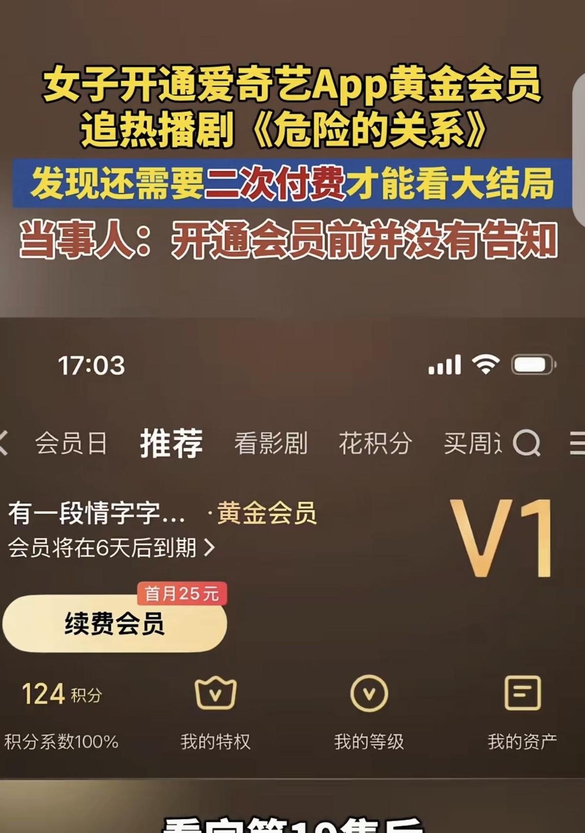 话说回来,这年头咱们普通人上个班累得够呛,下班回家窝在沙发上看个剧,无非就是图个情绪价值。武汉的林女士也是这么想的,她最近迷上了一部名叫《危险关系》的22集悬疑剧,剧情环环相扣实在让人欲罢不能。为了这难得的消遣,林女士是个爽快人,二话不说直接拿下了某视频APP的黄金会员。