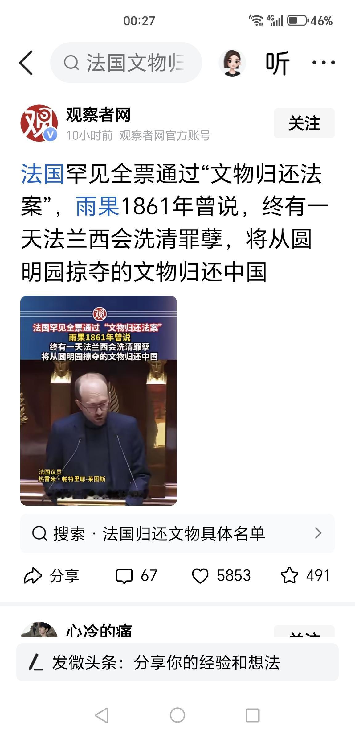 如今祖国日益强大,我国从未停止流失文物追讨工作,从兽首陆续回归,到积极推动国际文物追讨合作,一步步捍卫国家文化主权。圆明园的断壁残垣,是中华民族的警醒碑;流失海外的文物,是我们必须追回的文化根脉。