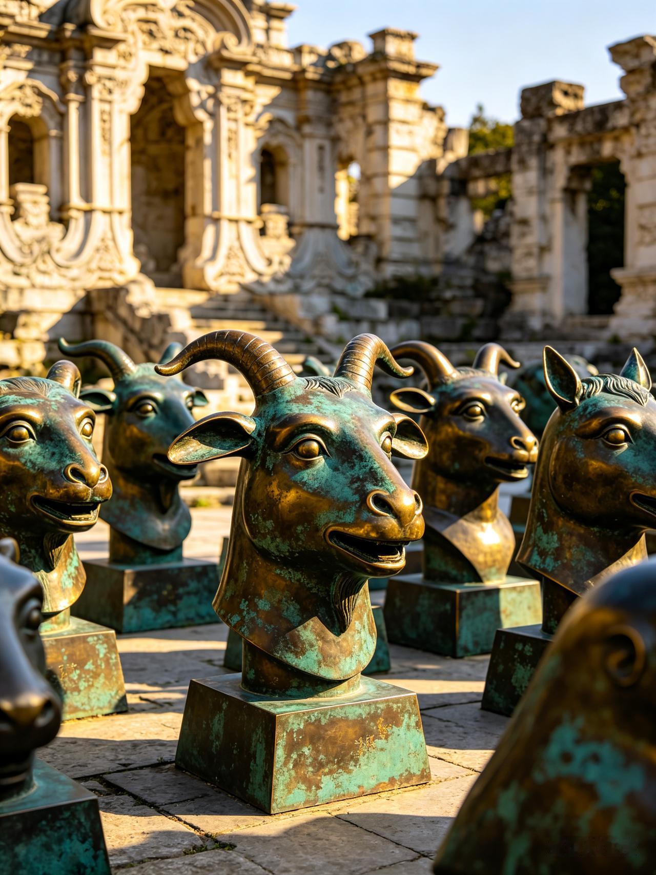郎世宁主持设计,为圆明园海晏堂喷泉构件,工艺精湛。目前牛、猴、虎、猪、马、鼠、兔7尊已回归,龙、蛇、羊、鸡、狗5尊依旧下落不明,是圆明园流失文物的标志性象征。
