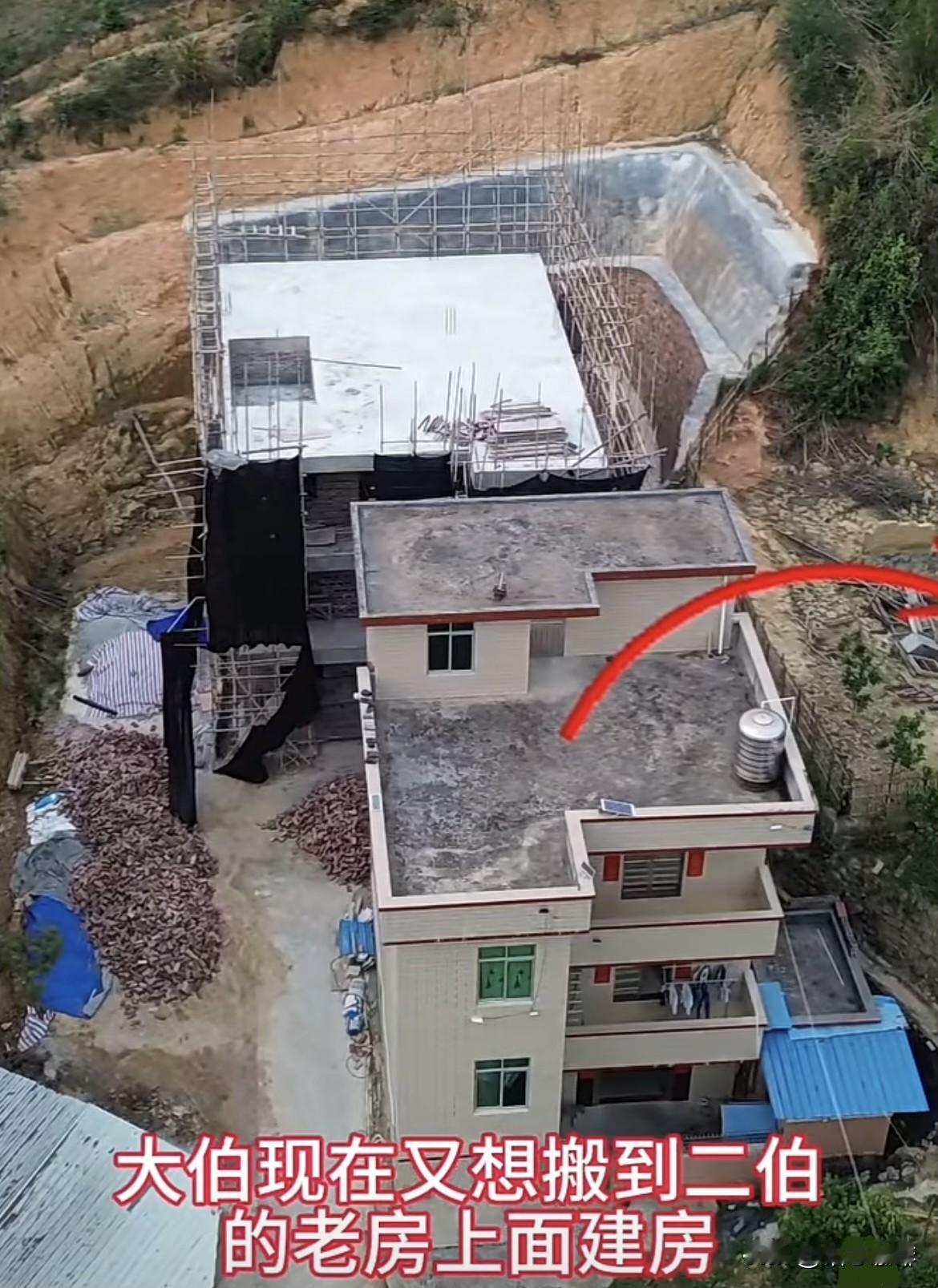 二伯因为住的地势太高, 便拆掉老房搬下来。 大伯现在又想搬到二伯 的老房上面建房