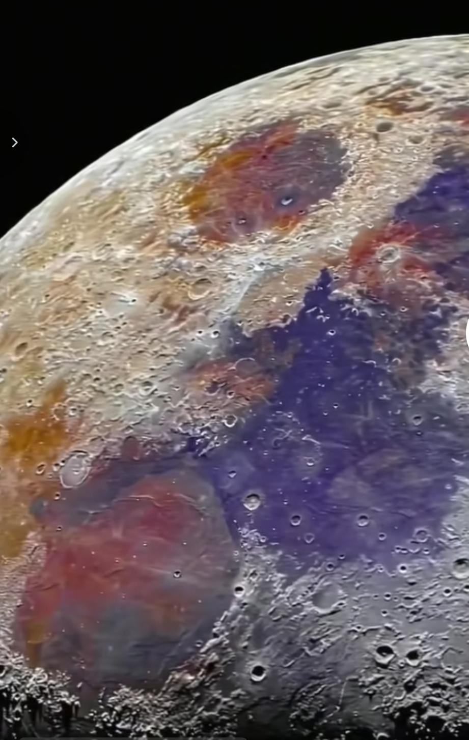 月球真实的高清照片是色彩斑斓的!而不是黄秃秃或者白秃秃的! 因为月球没有大气,所以太空中的小陨石可以直接攻击到地面。 而我们的地球其实每年都会有大量的陨石撞击!只不过因为有稠密的大气层,绝大多数陨石在空气中燃烧殆尽!