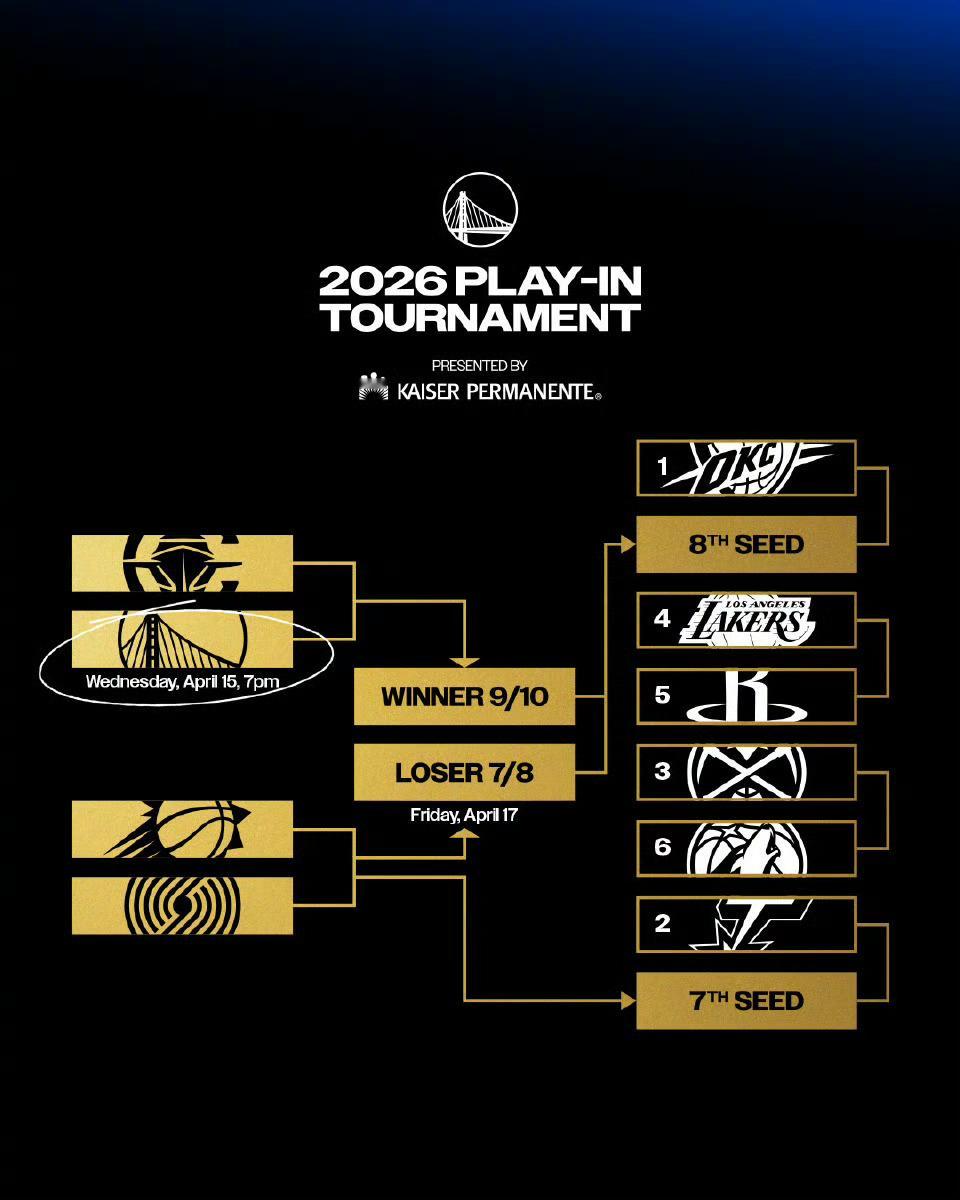 根据附加赛规则,勇士还需要和太阳竞争第八,下一场继续加油!!!