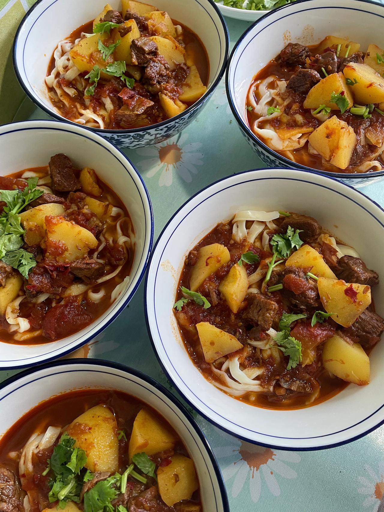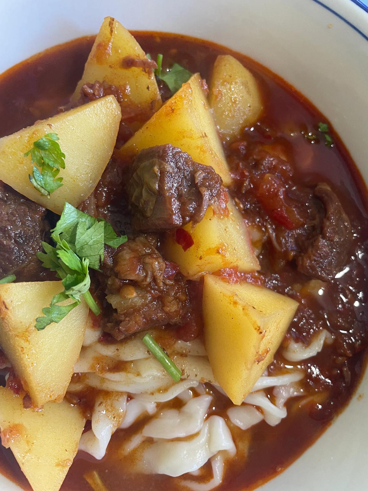 牛腩和牛上脑做出来的番茄牛肉面对比图,还是买牛上脑好些,做出来主要有型,牛腩筋膜和肥的部分多,同样的时间在高压锅里牛腩好多部分都化了。