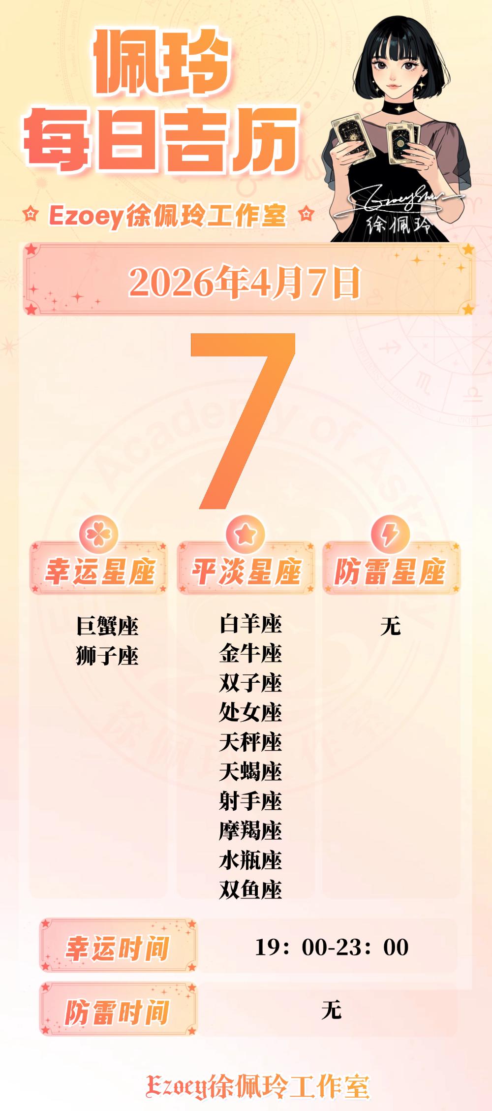 【4.7日播报】开心成长日 幸运星座:巨蟹座、狮子座——Ezoey徐佩玲26年星