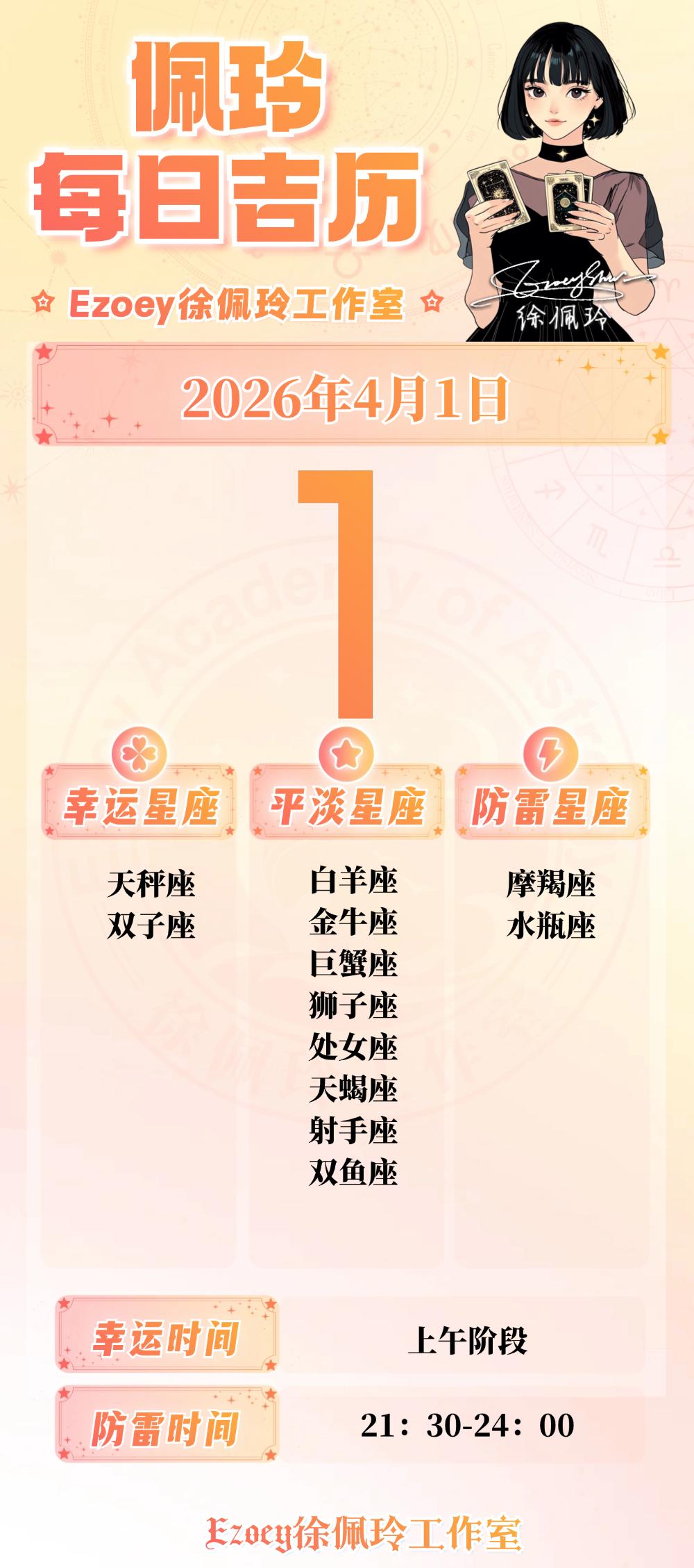 【4.1日播报】平衡协调日 幸运星座:天秤座、双子座——Ezoey徐佩玲26年星