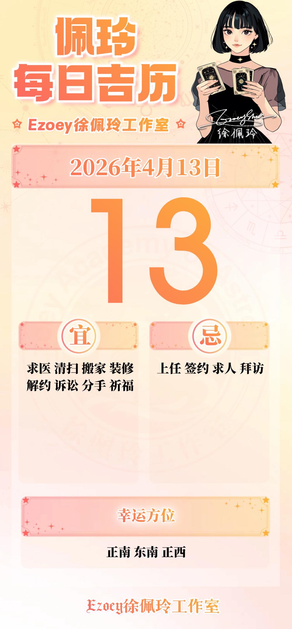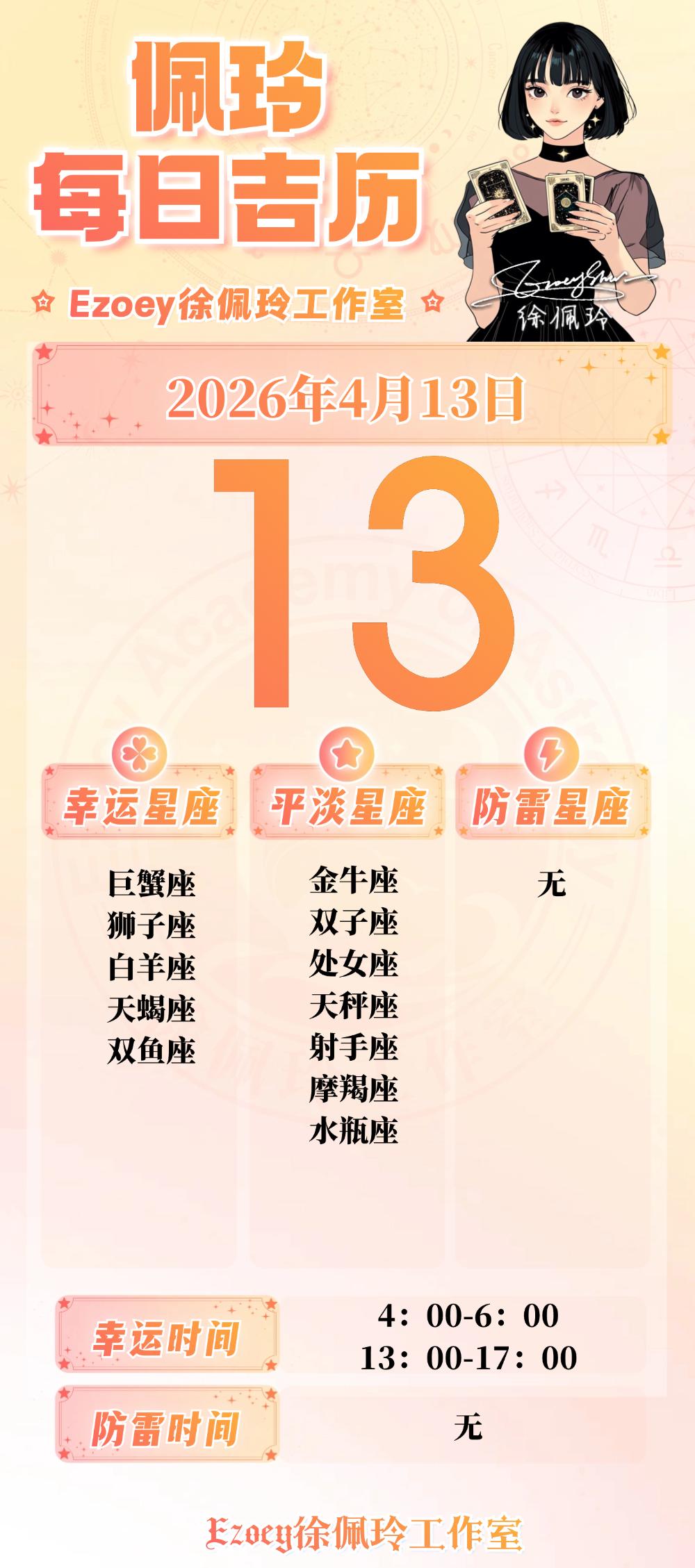 【4.13日播报】幸运助力日 幸运星星:巨蟹座、狮子座、白羊座、天蝎座、双鱼座——Ezoey徐佩玲26年星座播报