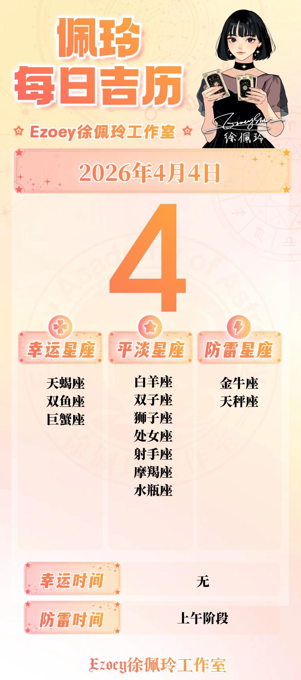 【4.4日播报】轻度预警日 幸运星座:天蝎座、双鱼座、巨蟹座——Ezoey徐佩玲26年星座播报
