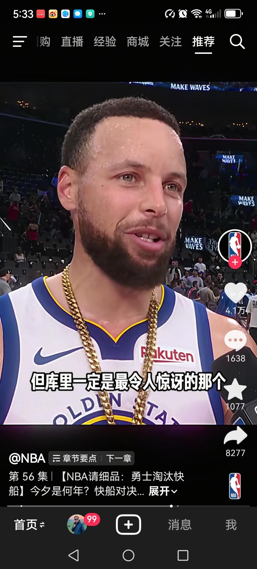 今天库里贡献了35分1篮板4助攻1抢断,三分球12投7中。最后时刻老将霍福德的四记三分也是个个价值连城。