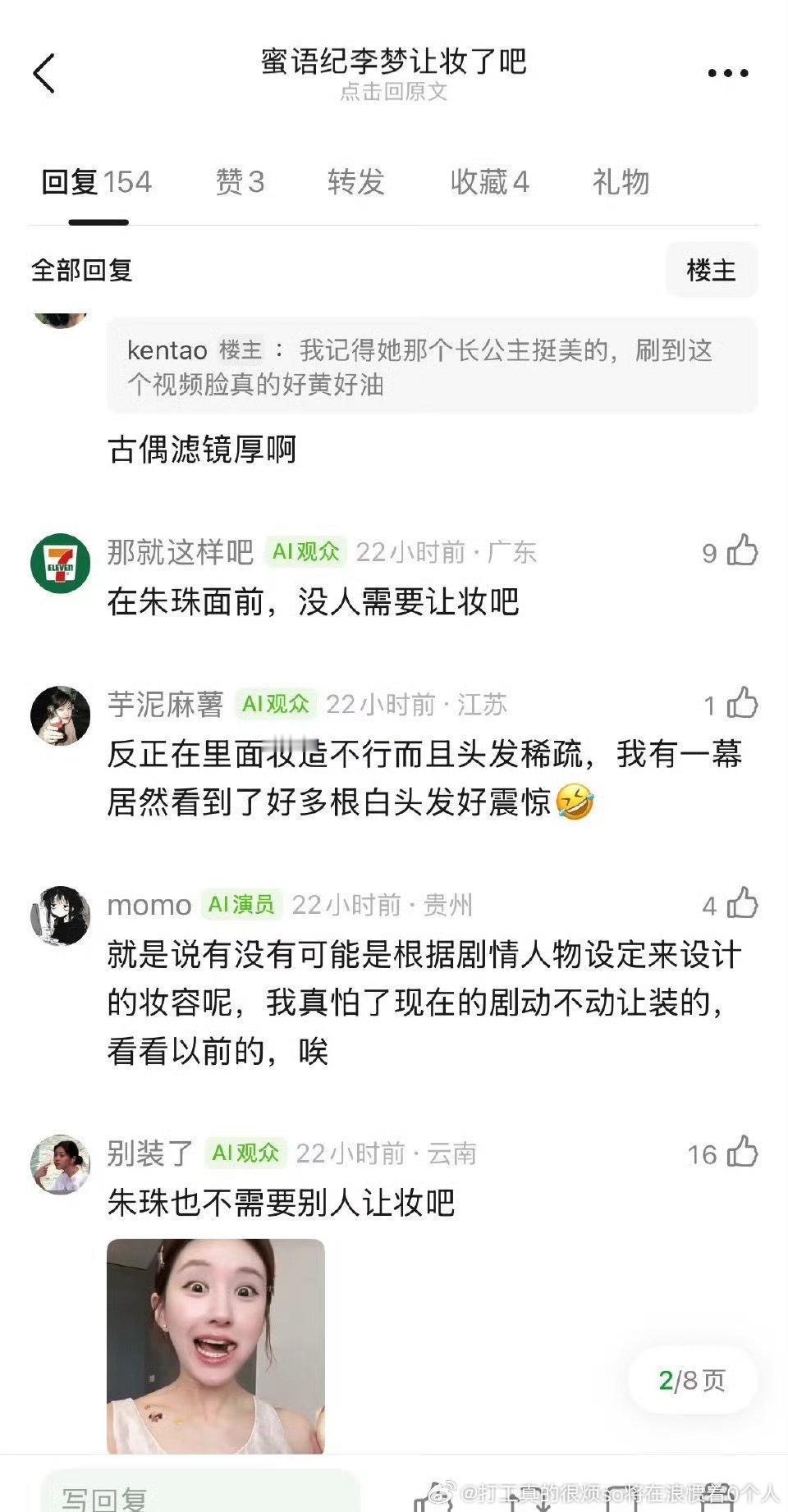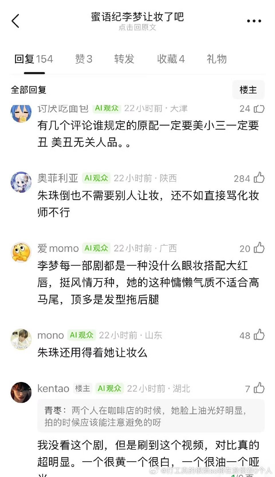 别说是朱珠是谁都是让妆啊,朱珠妆容比李梦精致浓重太多这些人对糊人滤镜大得吓人