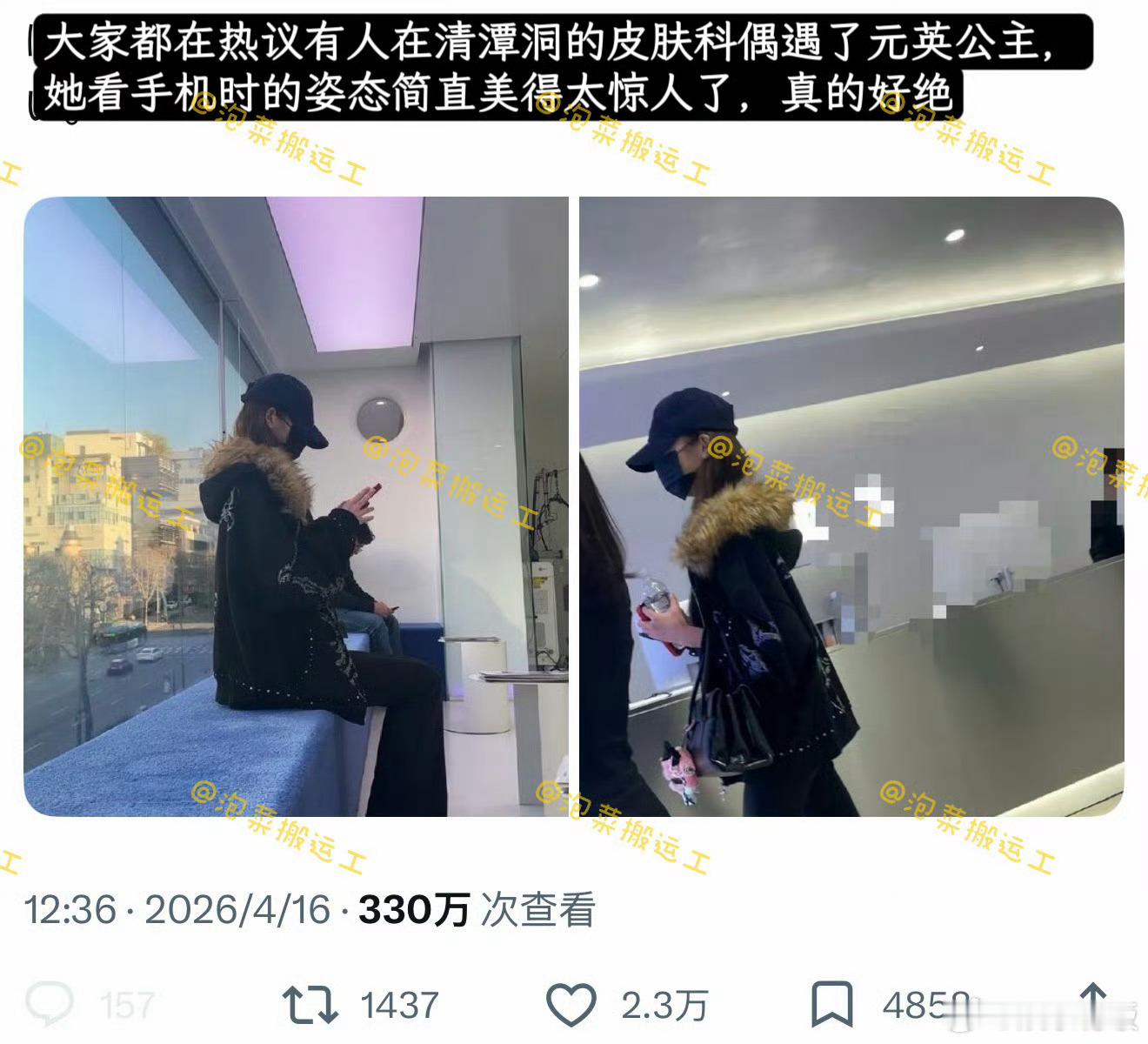 偶遇张元英去皮肤科 网友在清潭洞皮肤科偶遇张元英~连看手机的姿势都自带氛围感,不愧是元英公主,随手一拍都是画报感!